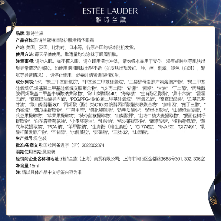 雅诗兰黛小棕瓶精华眼霜15ml护肤品化妆品礼盒淡化细纹黑眼圈