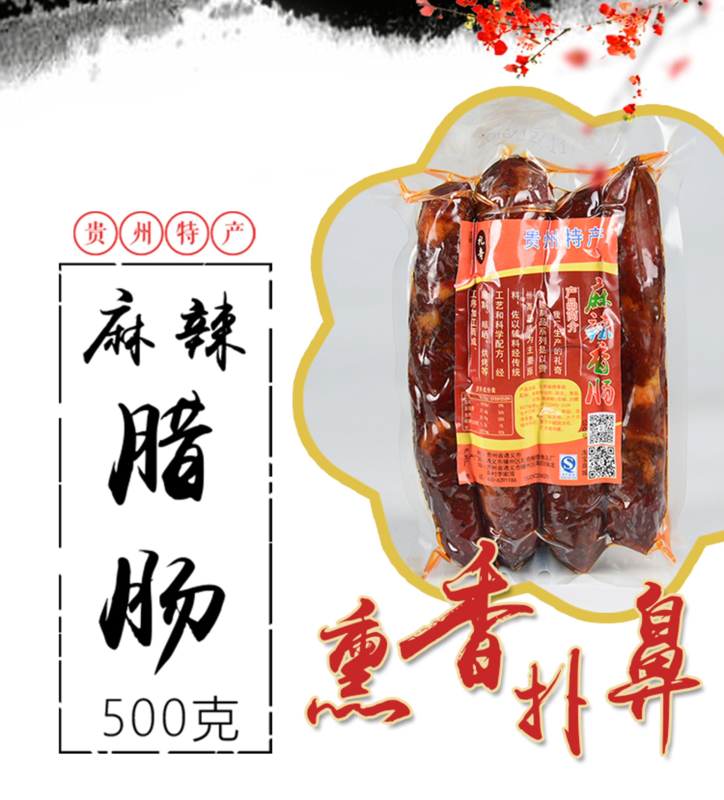 礼奇烟熏麻辣香肠500g贵州特产农家自制土猪传统烟熏腊肠腊肉