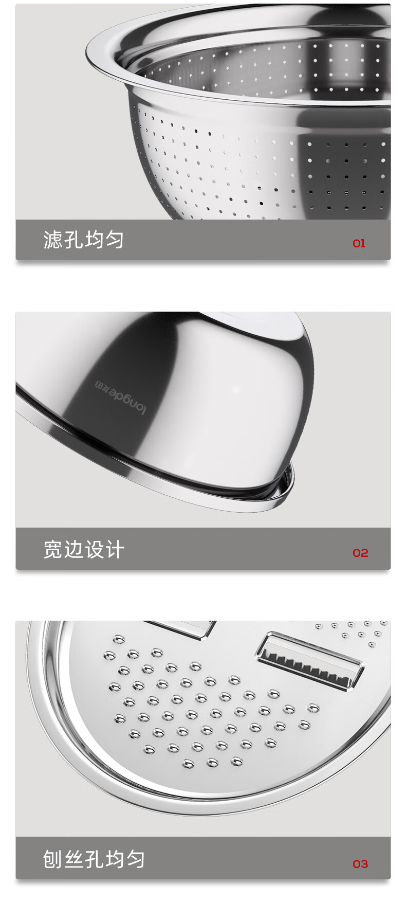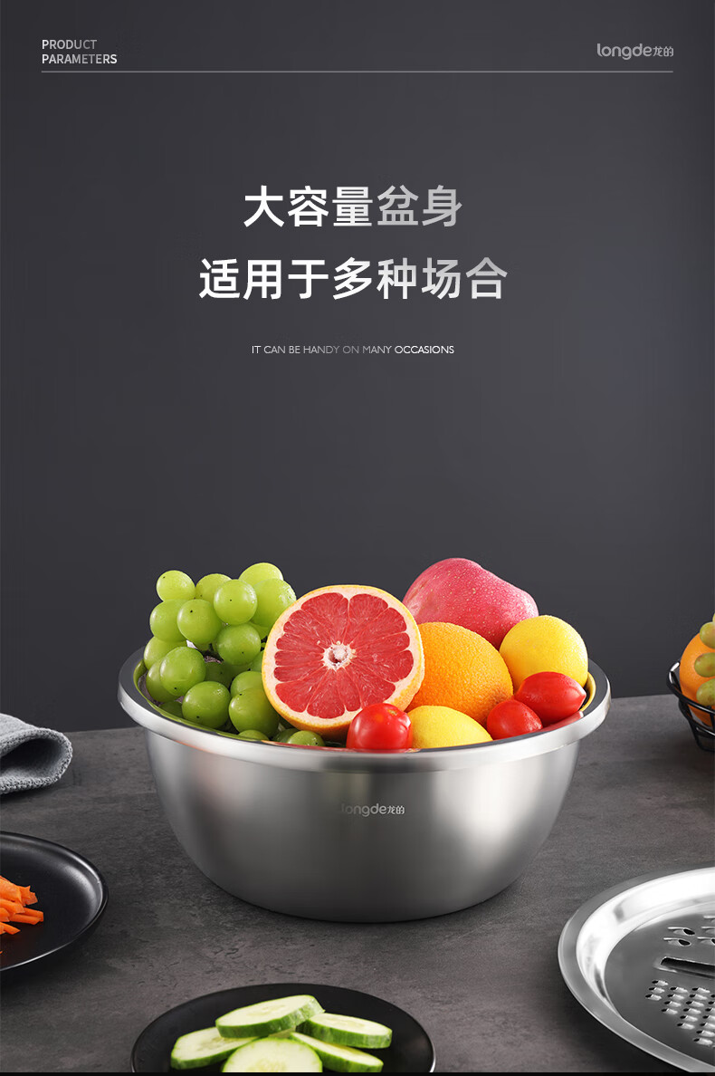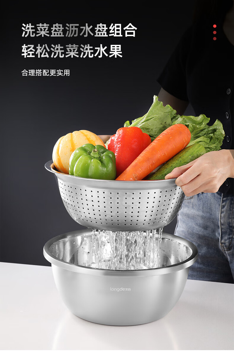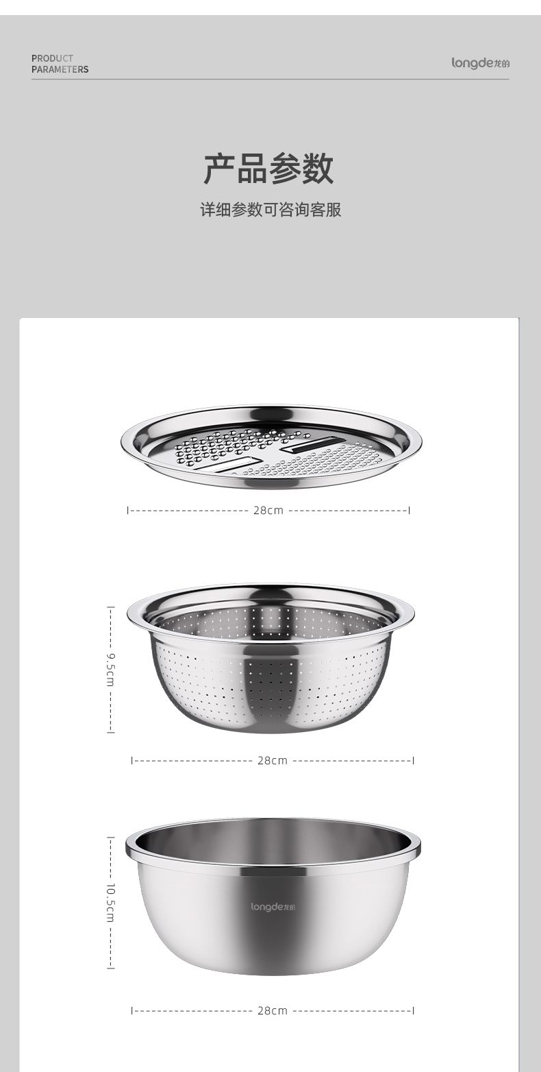 【小家电】龙的longde厨房三宝多功能切菜器切丝切片萝卜土豆丝器刨丝器洗菜盆沥水盘厨房三件套 LD-CJ891-3 HF