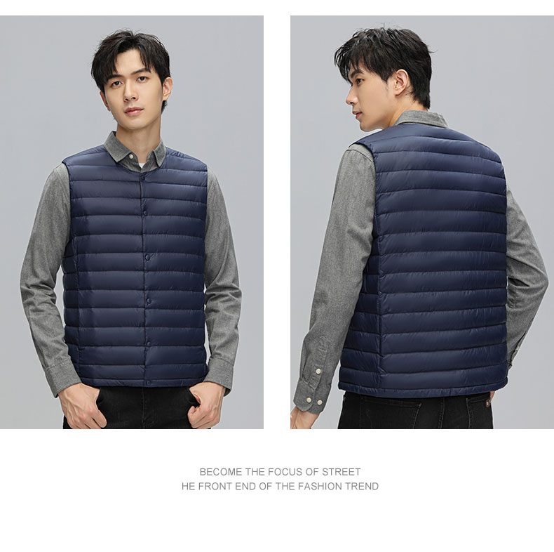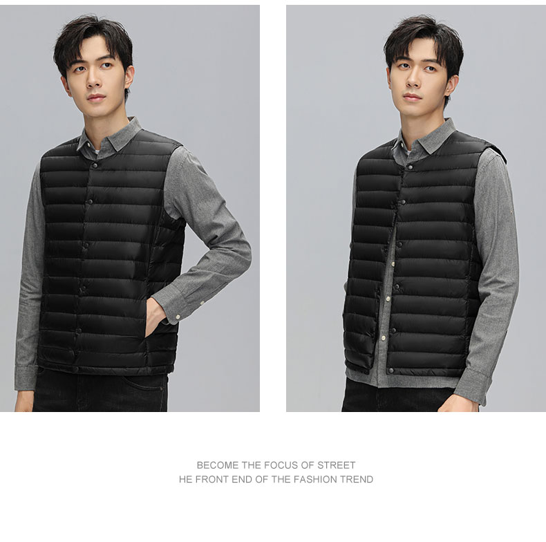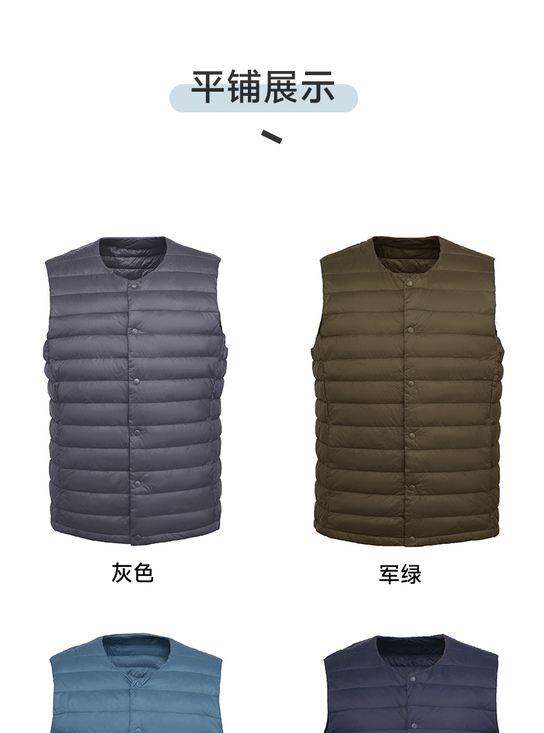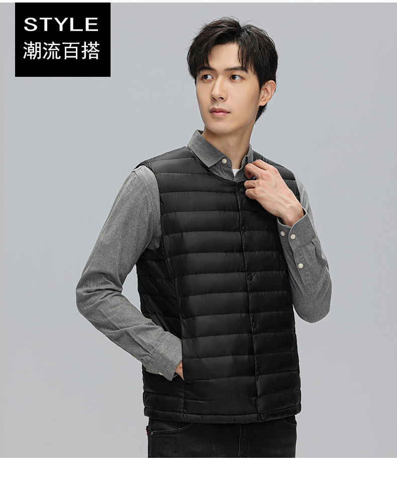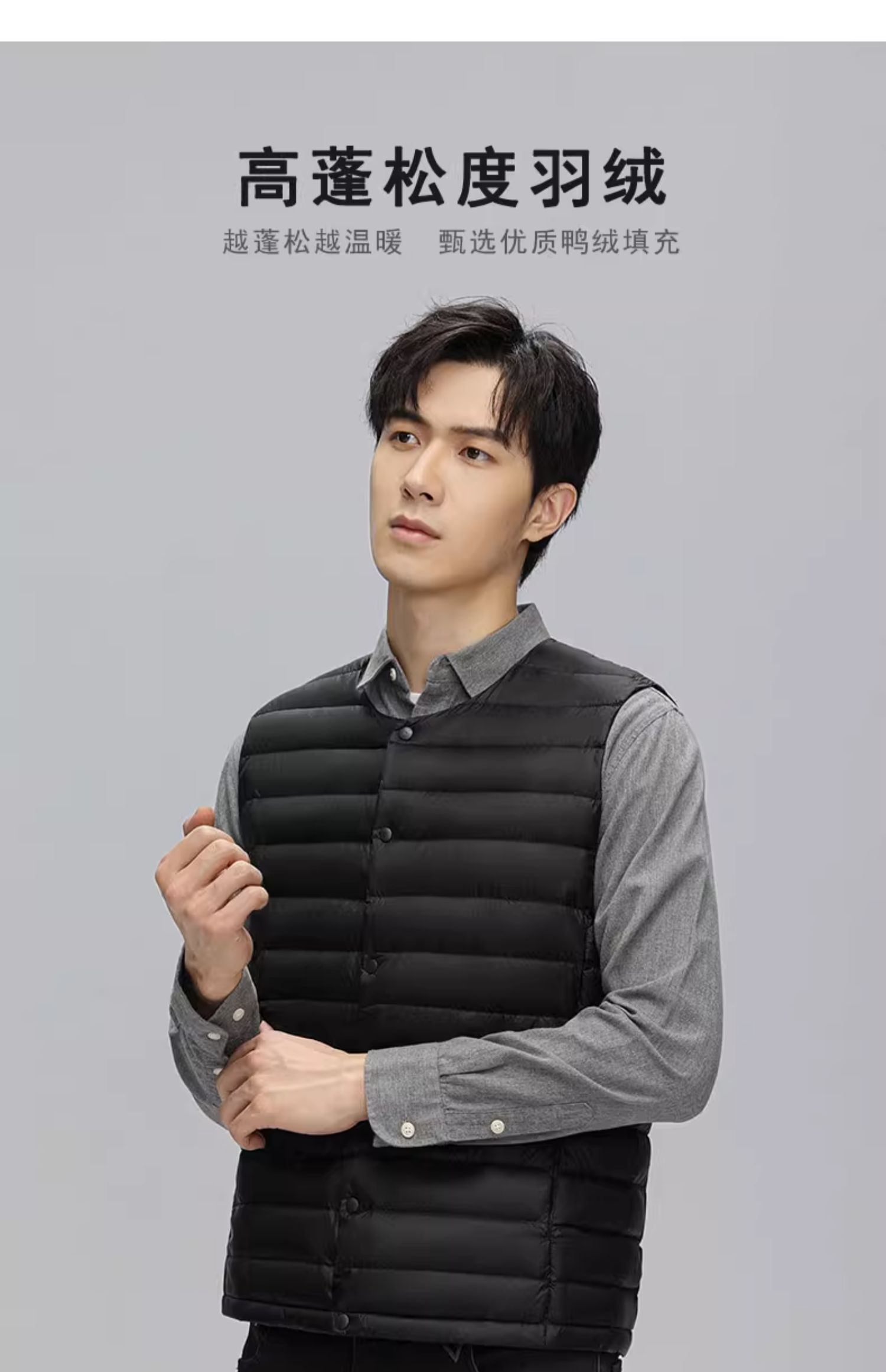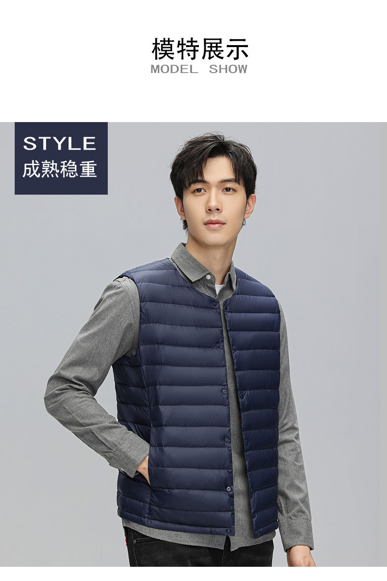 半身缘男装 冬季内穿保暖无领轻薄打底羽绒内胆外套羽绒背心马甲02032