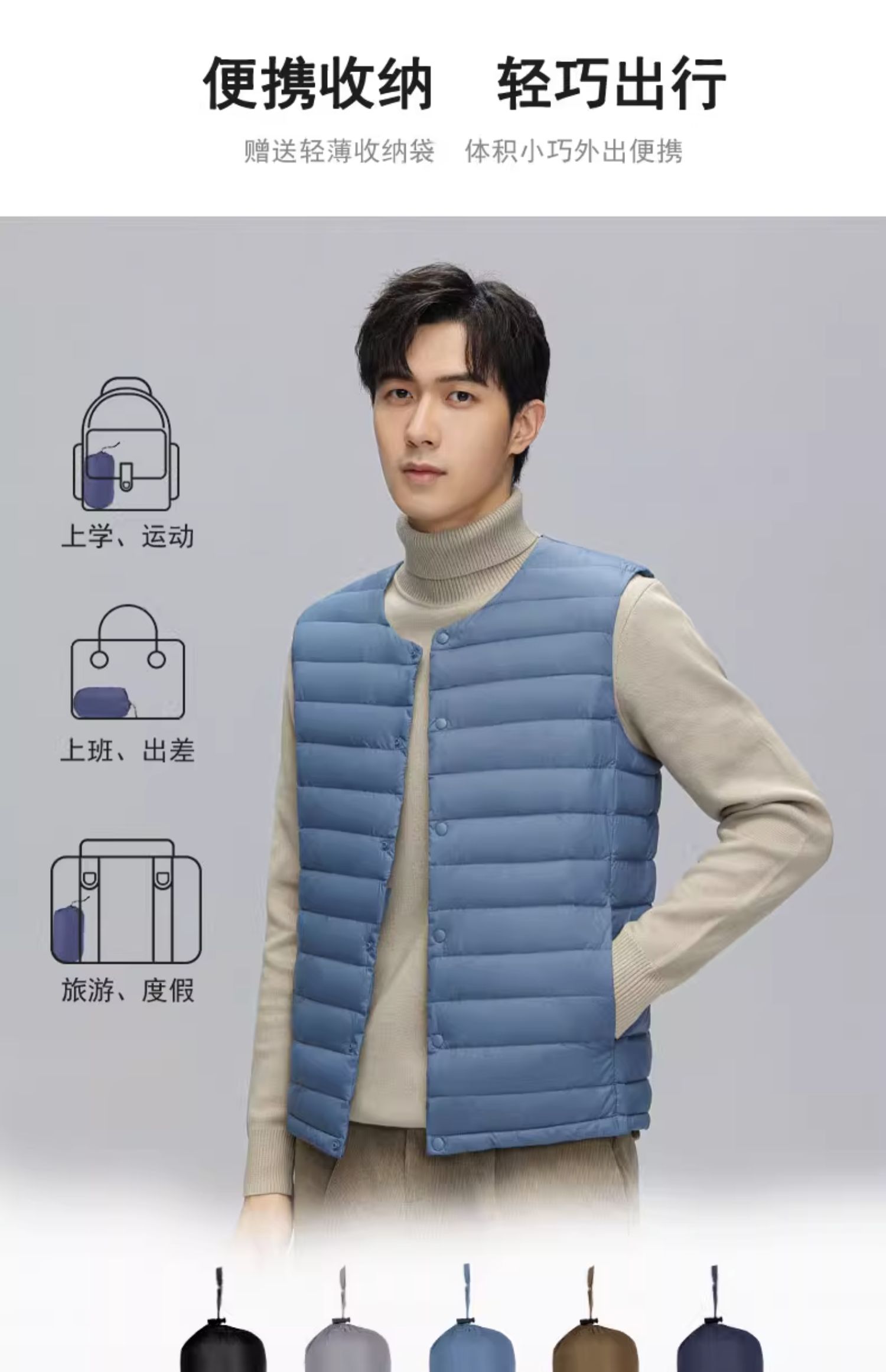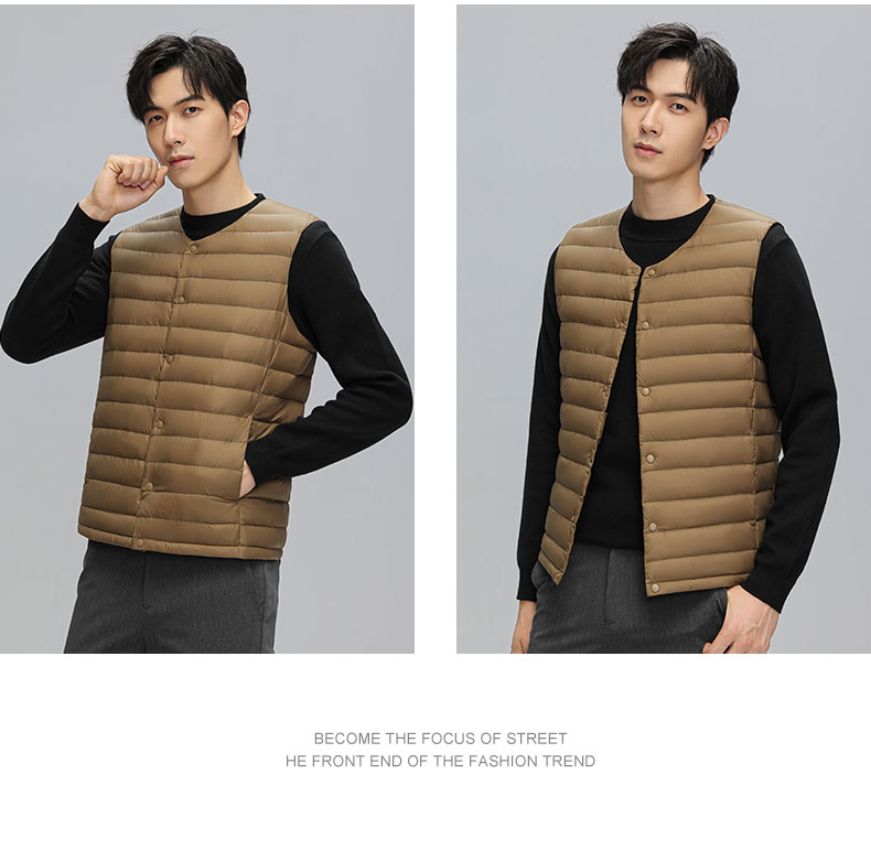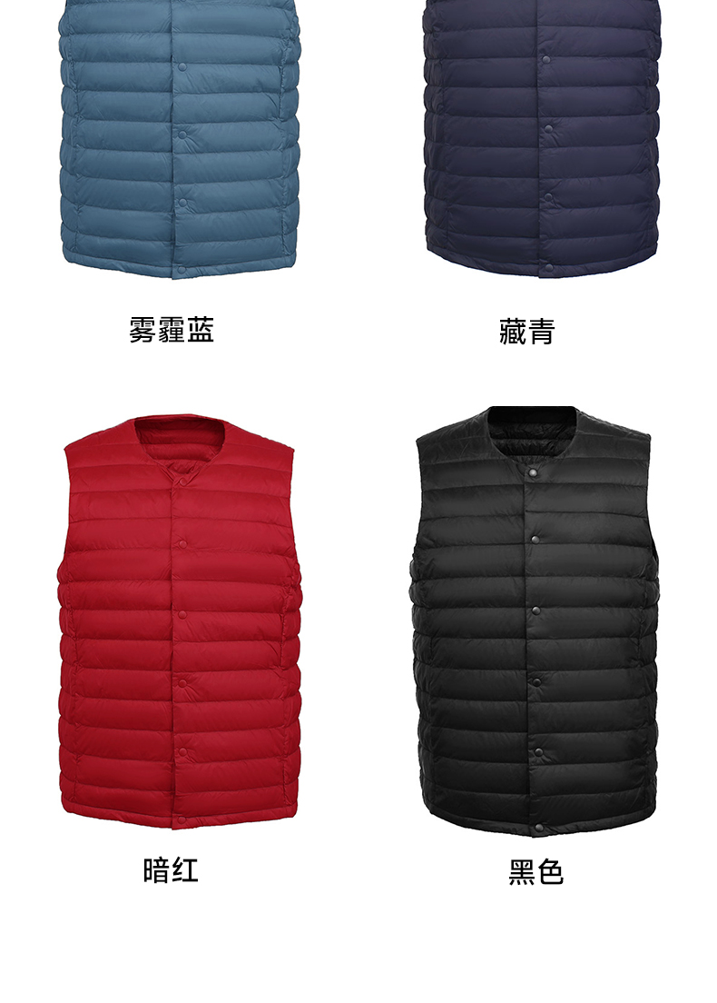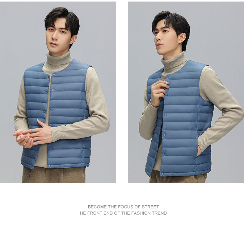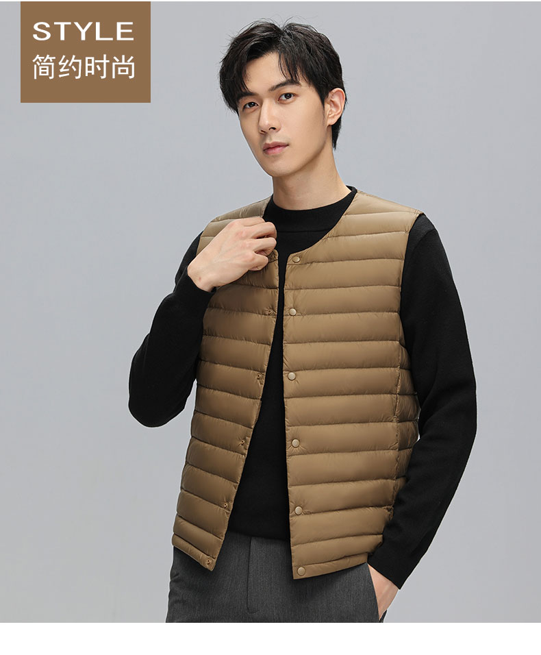 半身缘男装 冬季内穿保暖无领轻薄打底羽绒内胆外套羽绒背心马甲02032