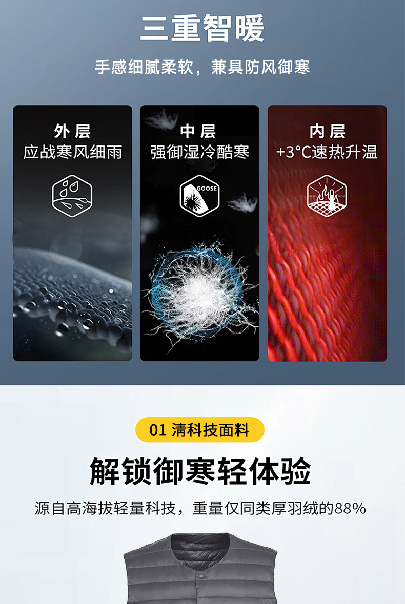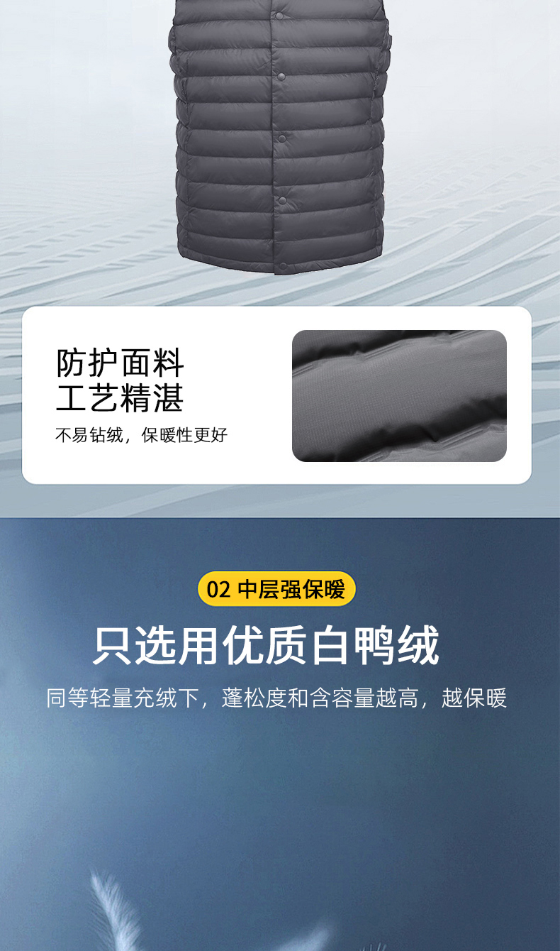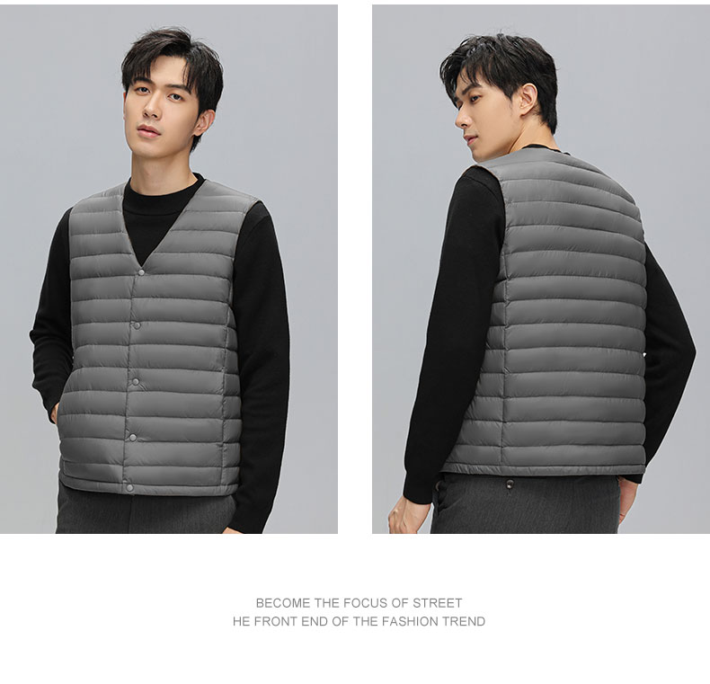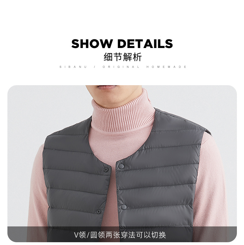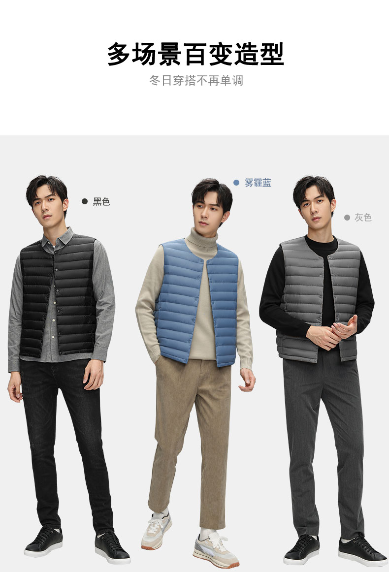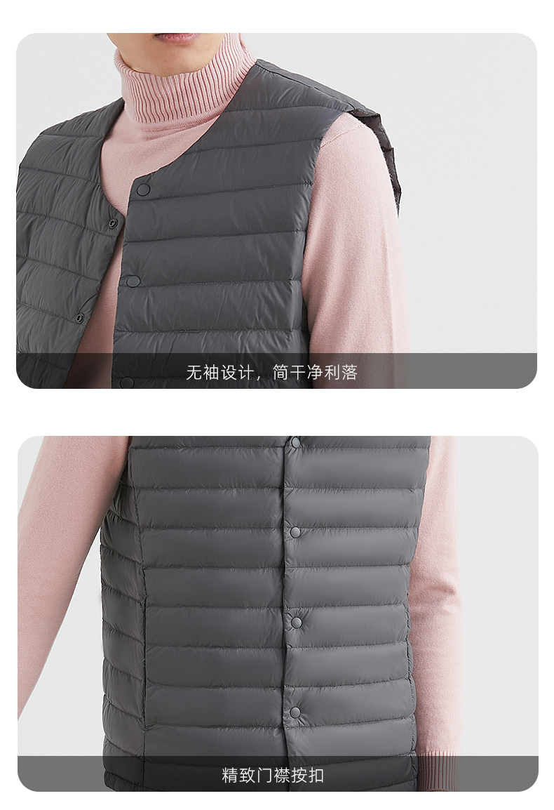 半身缘男装 冬季内穿保暖无领轻薄打底羽绒内胆外套羽绒背心马甲02032