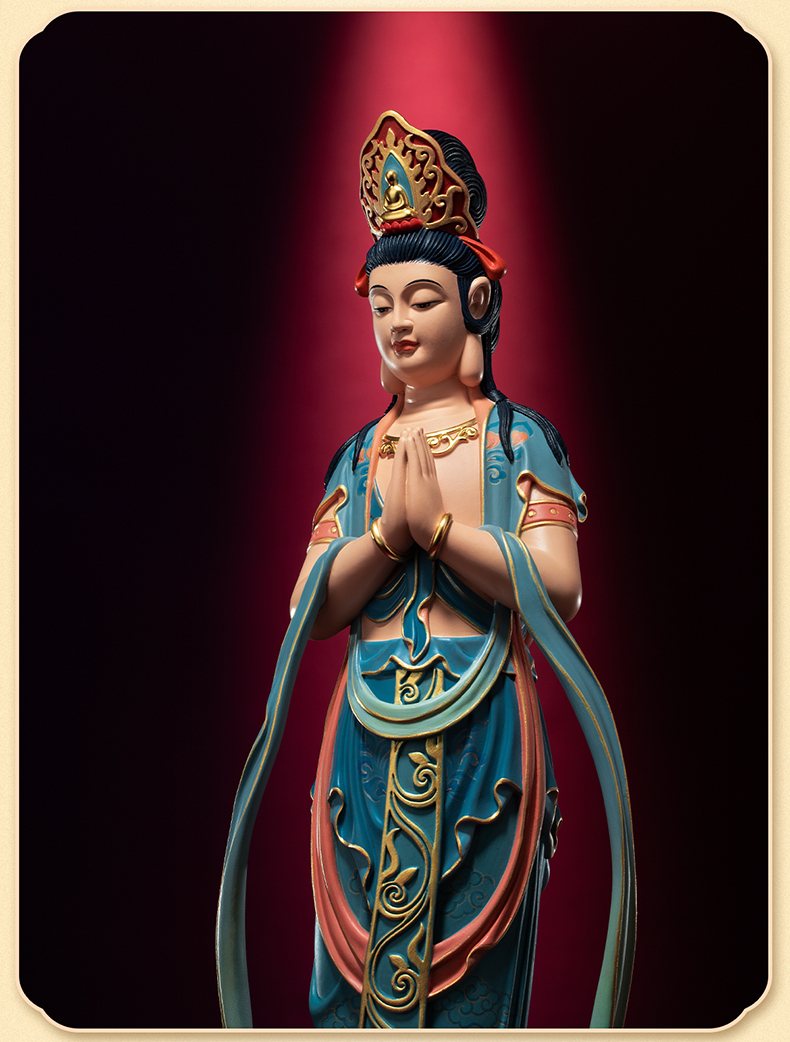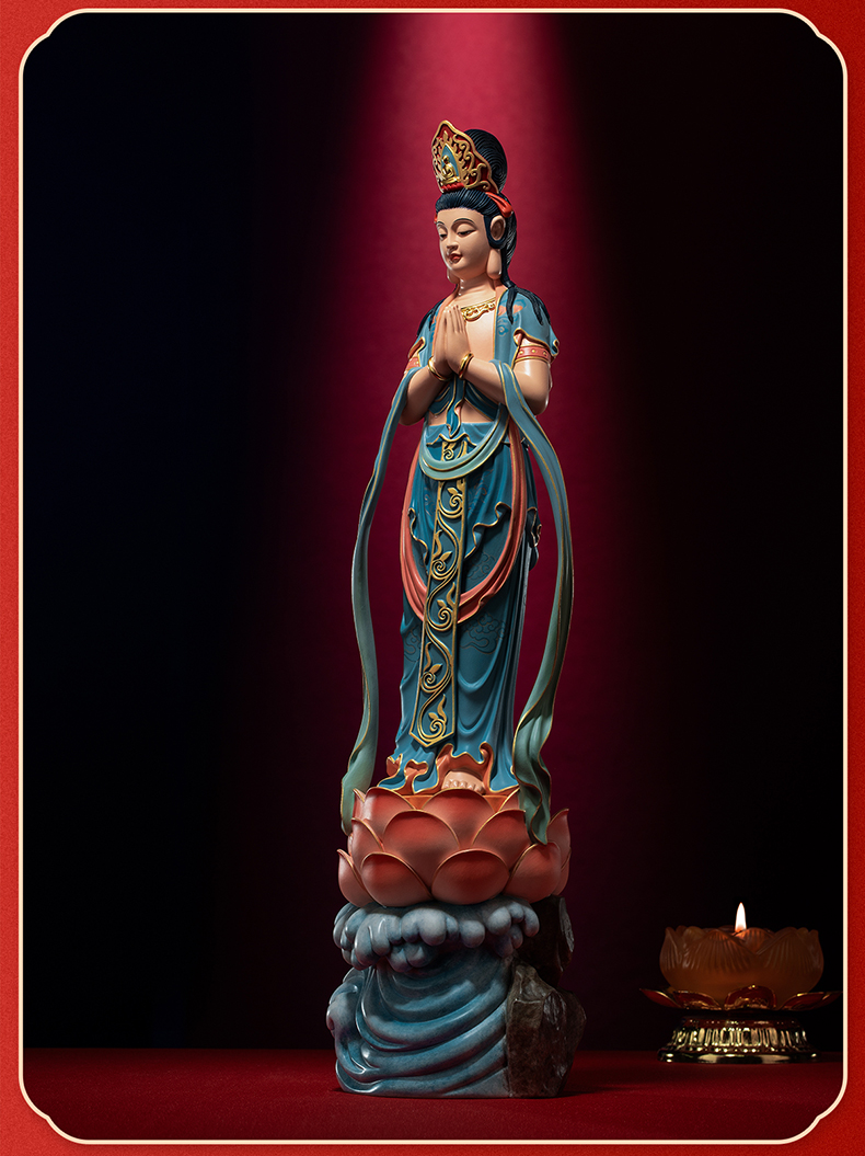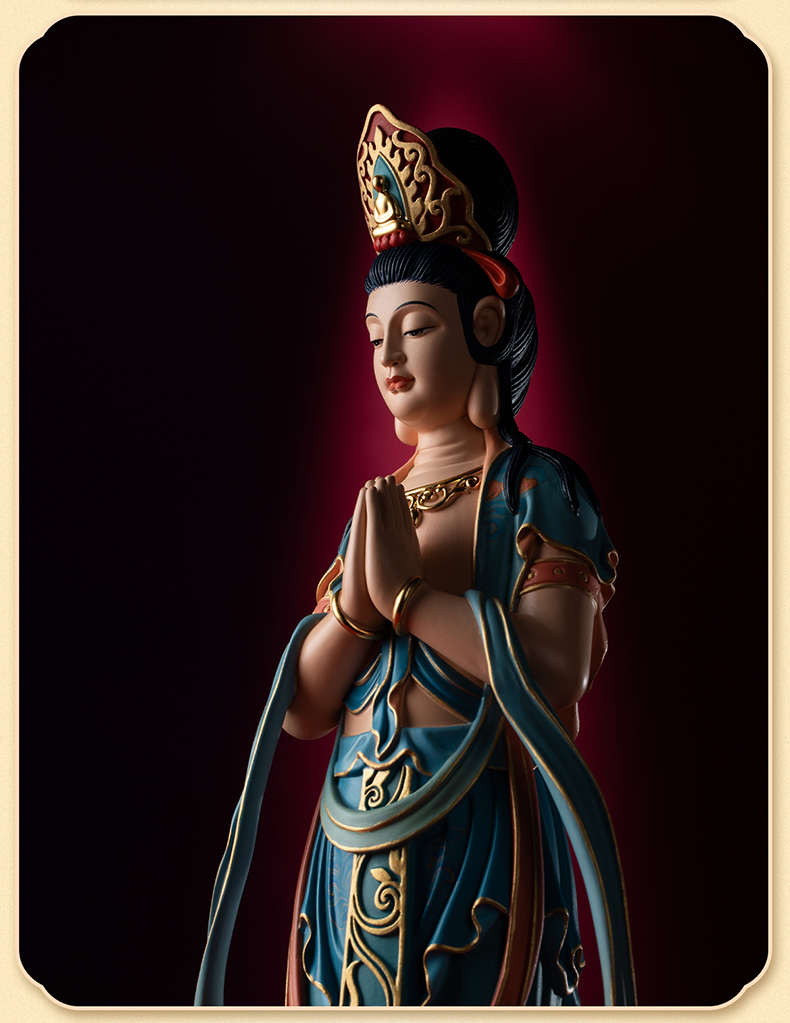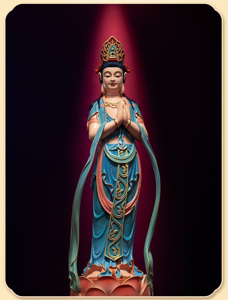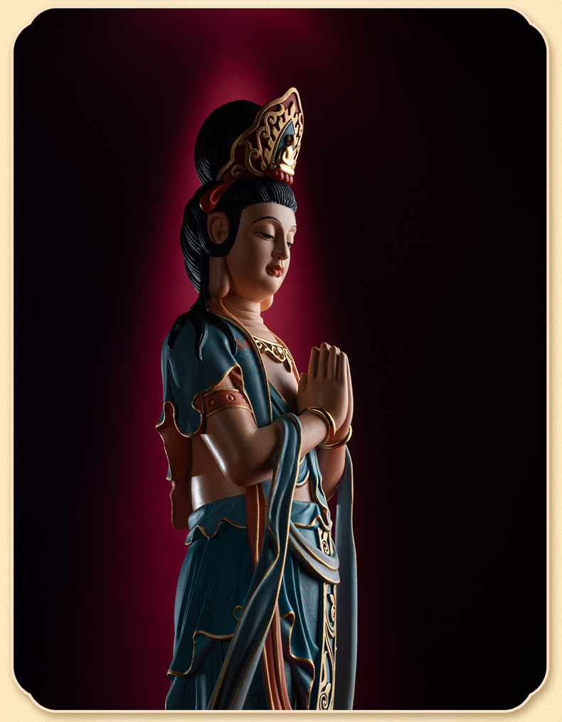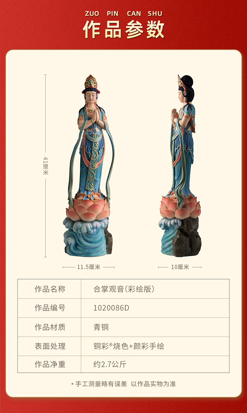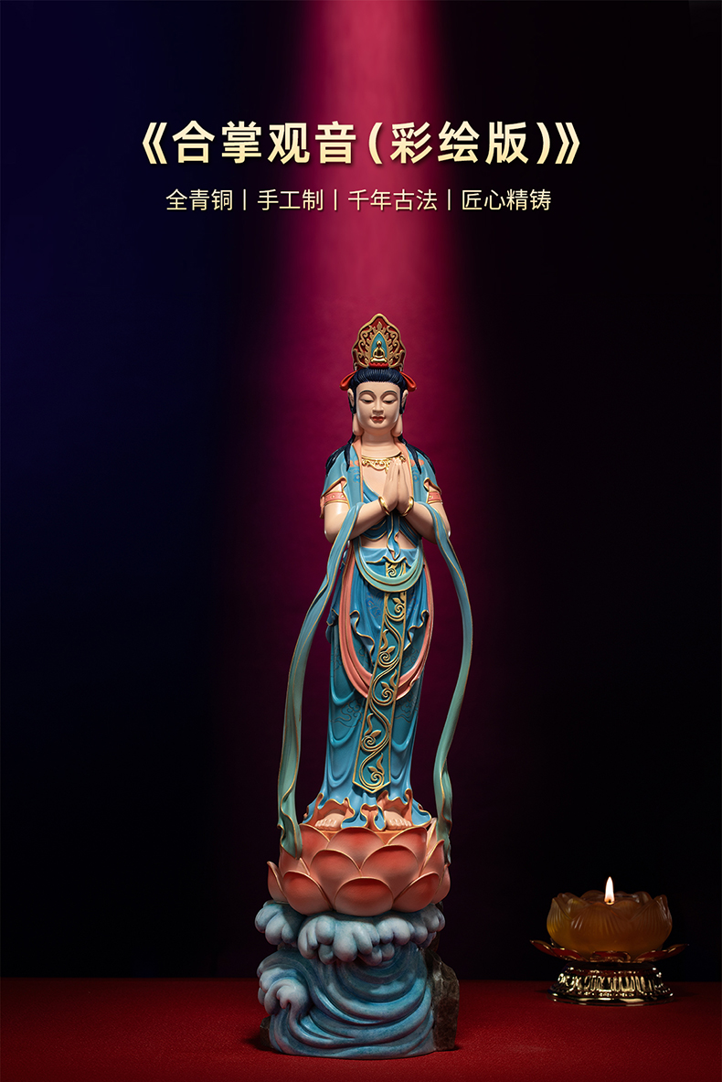 铜师傅《合掌观音(彩绘版)》客厅桌面青铜摆件 家居装饰工艺品