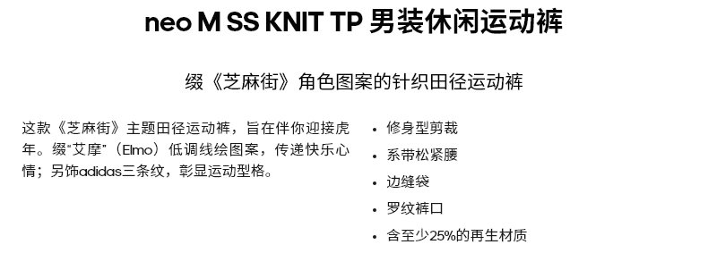 adidas阿迪达斯neo芝麻街联名男新年款新款休闲加厚运动裤HD7291