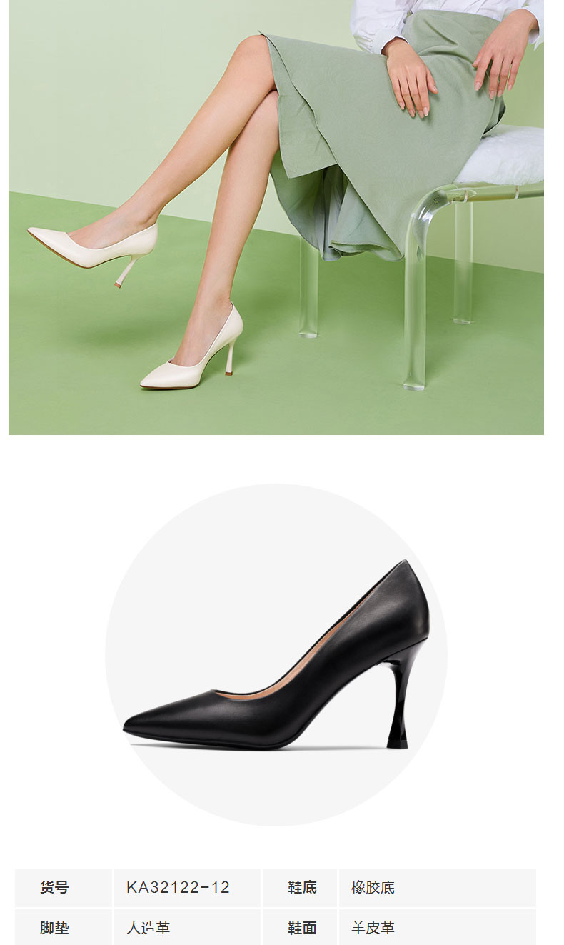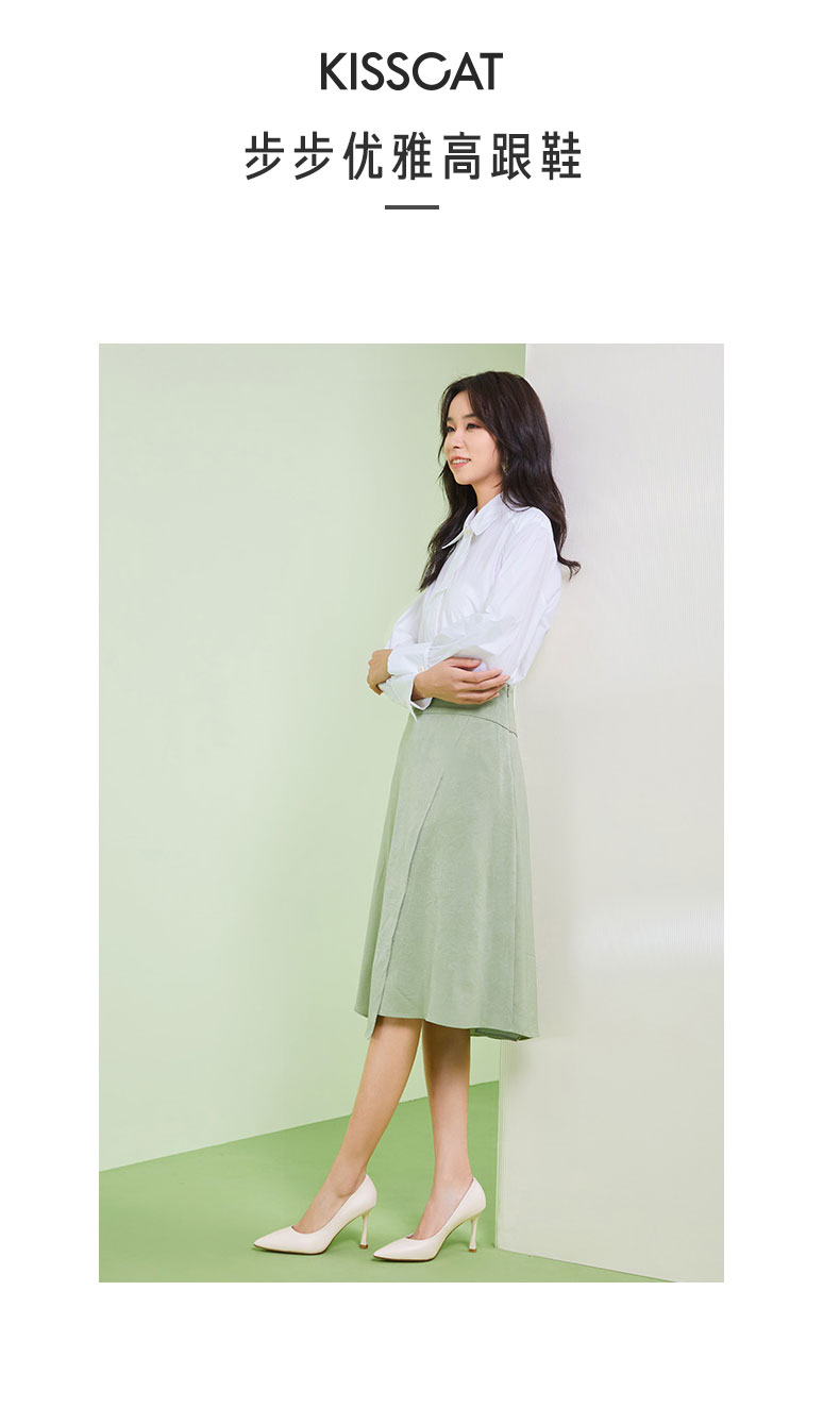 接吻猫超高跟鞋女2022年春夏季新款通勤气质尖头细跟羊皮单鞋女鞋32122-12