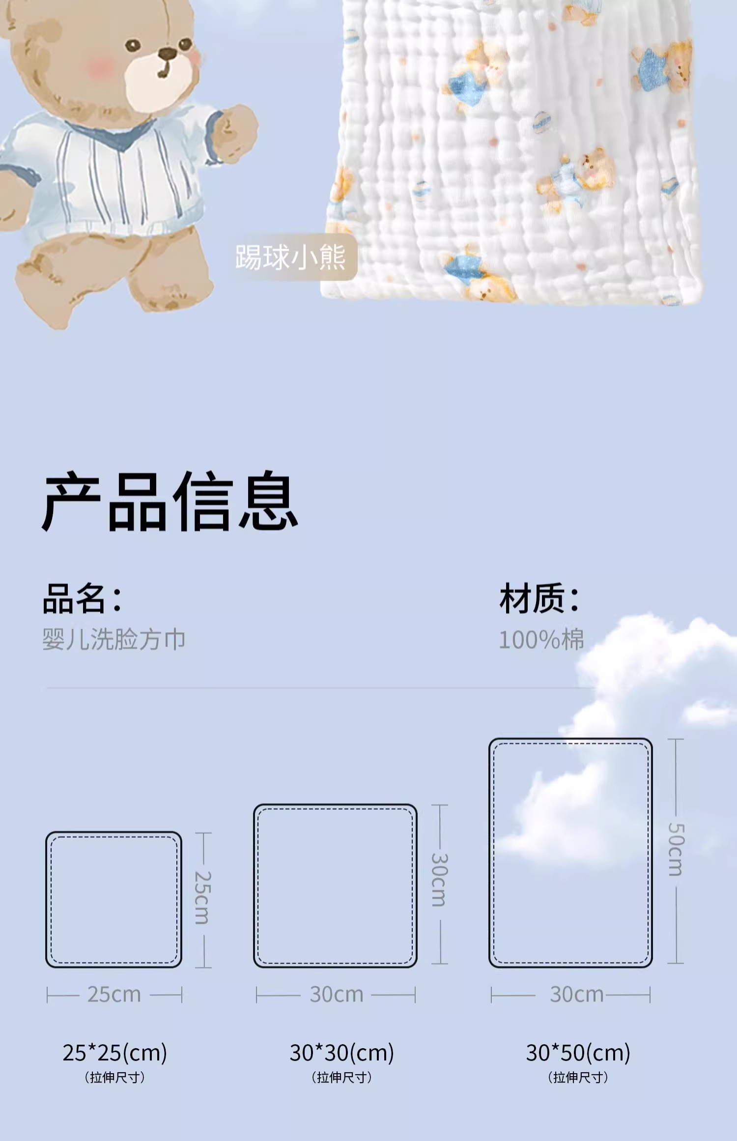 科巢婴儿口水巾新生儿纯棉超软小方巾宝宝专用洗脸巾儿童用品纱布毛巾