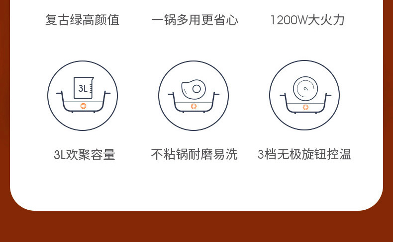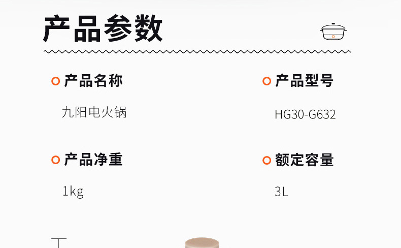 九阳多功能电火锅 HG30-G632 经久耐用 一锅多用