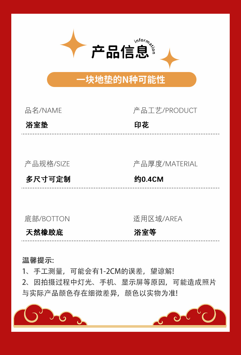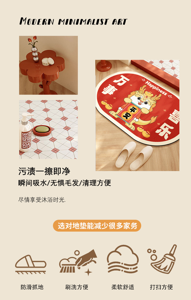 【选对地垫减少很多家务】龙年浴室地垫红色地毯 巨能吸水耐脏浴室/防滑垫 脚垫