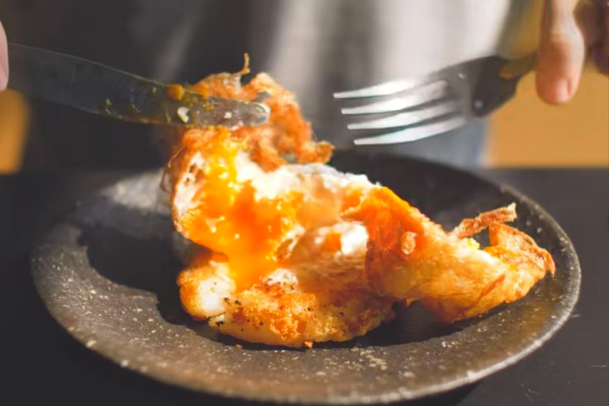 普通煎蛋:锅中淋油,打入鸡蛋,小火慢煎,可根据喜好煎单面或双面,可撒上少许盐和黑胡椒粉 。