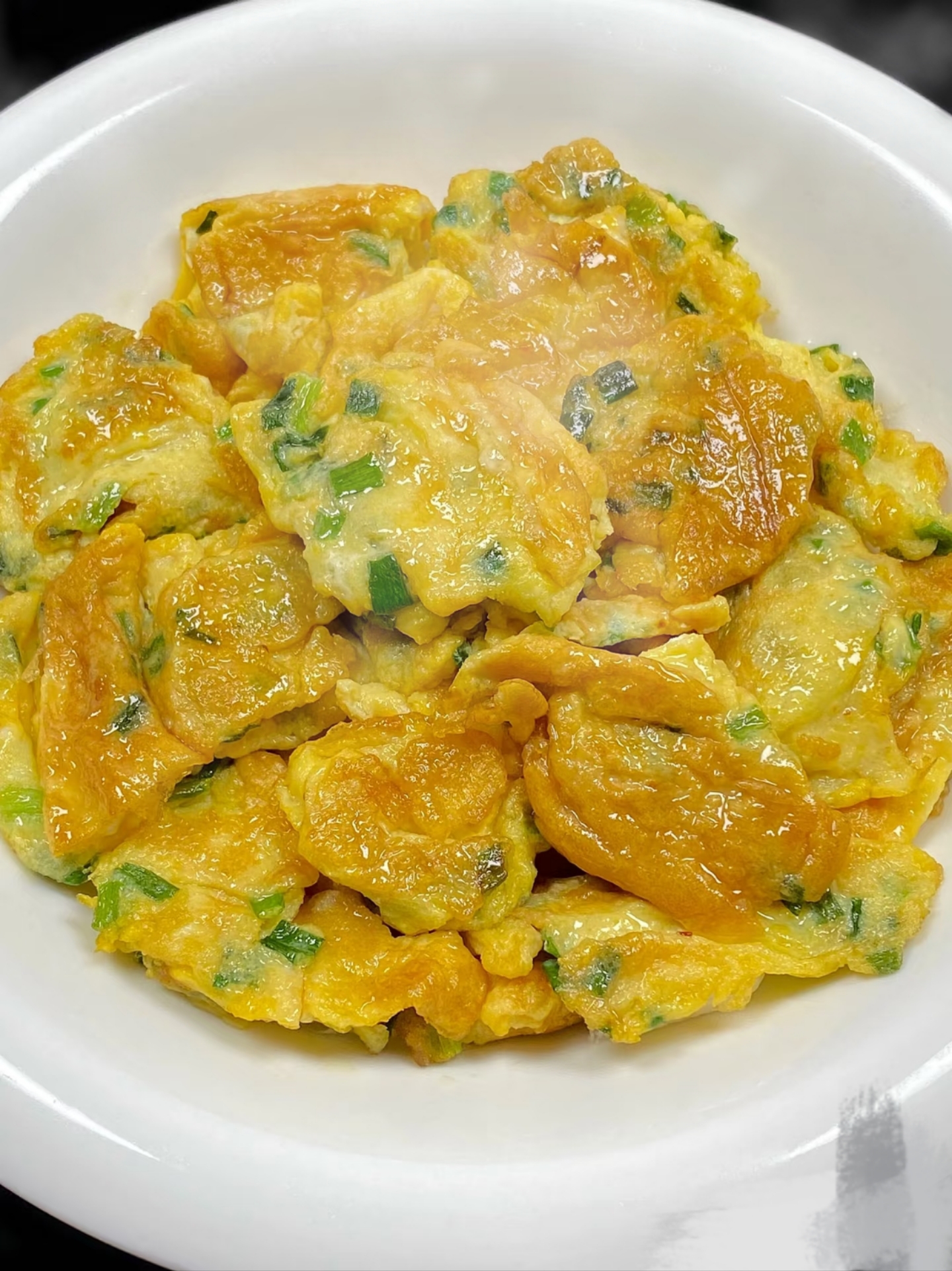普通炒鸡蛋:碗中打入鸡蛋,加适量盐、葱花,搅拌均匀。锅中倒油,油热后倒入鸡蛋液,待蛋液基本成型后用铲子轻轻推散,炒熟即可 。