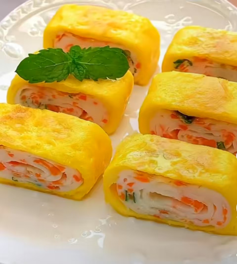 双色煎蛋卷:将青红椒洗净切成丁,分别放入蛋黄和蛋清中,加少许水打散拌匀。平底锅淋油,先倒入蛋黄液,旋转锅底至蛋液成型后卷起,再倒入蛋清液,凝固后将蛋黄卷放在蛋清卷上一起卷起来,切成段 。