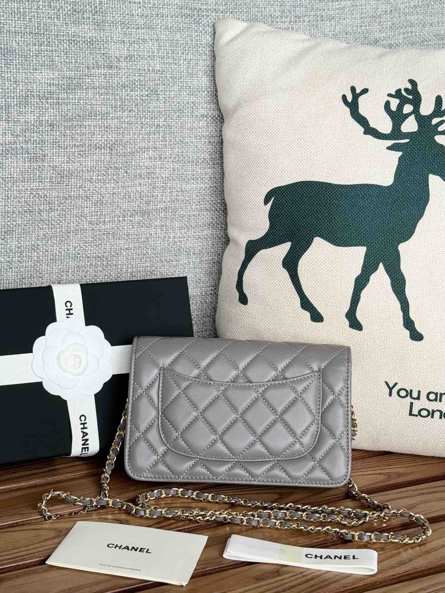 香奈儿woc链条包🉐️羊皮-灰色金扣
