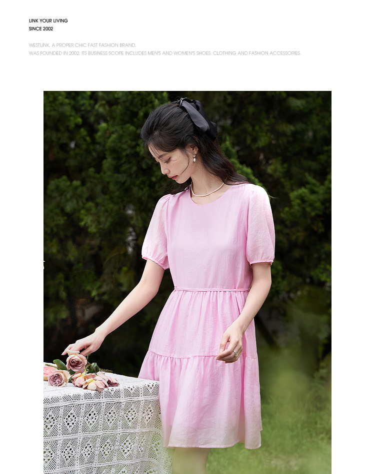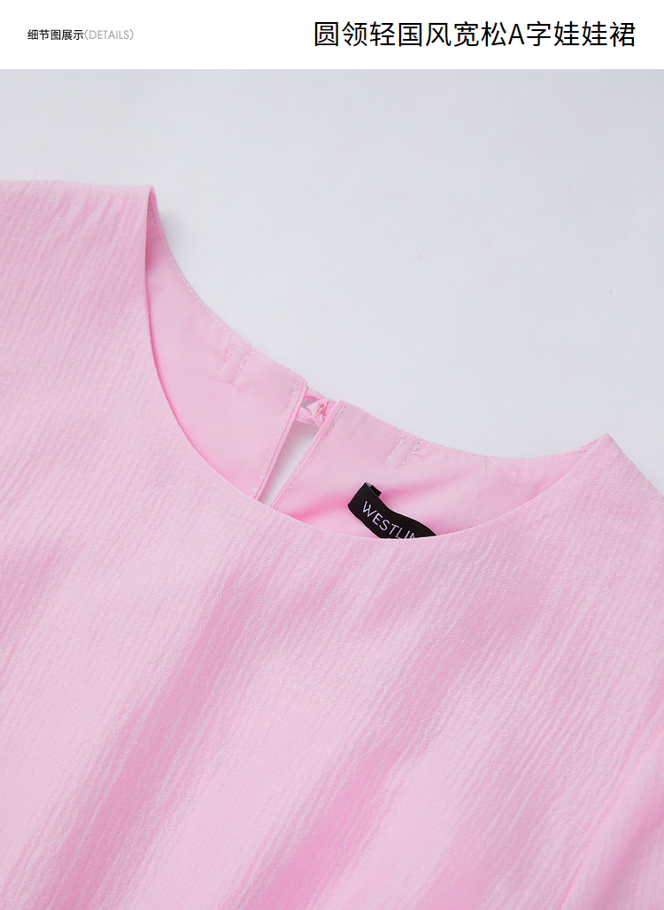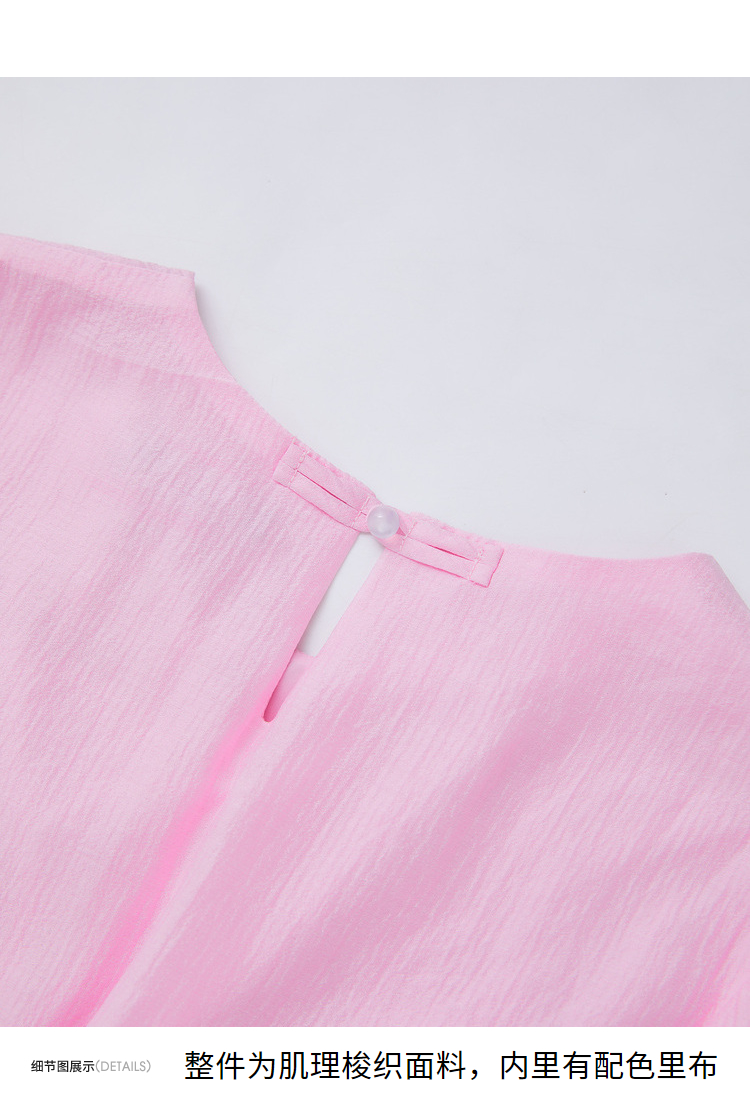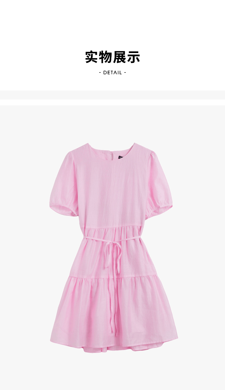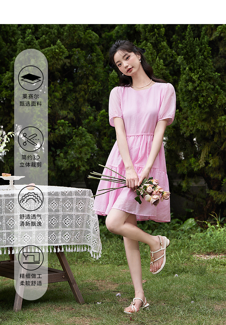 度假风简约甜美泡泡袖蛋糕裙女夏季后领开叉设计感连衣裙V1441226