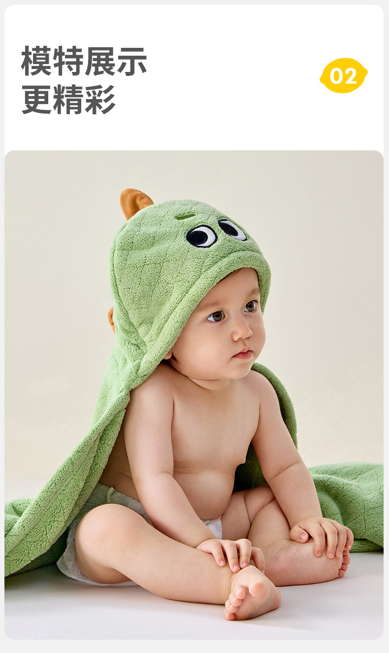 暖抱抱连帽浴巾-绿色【品牌优选】