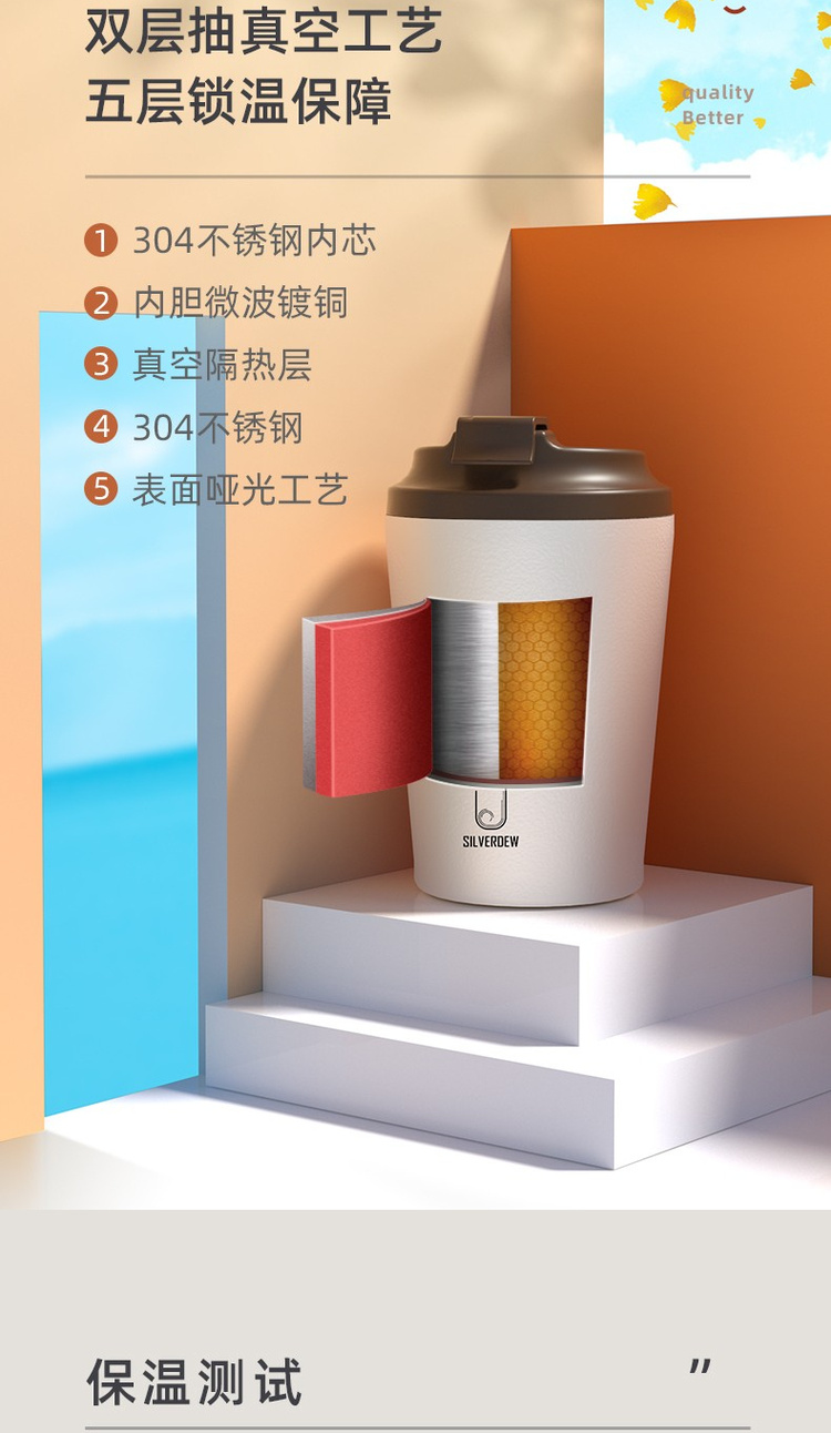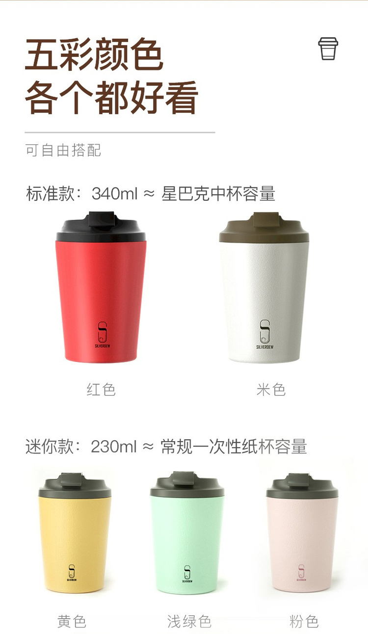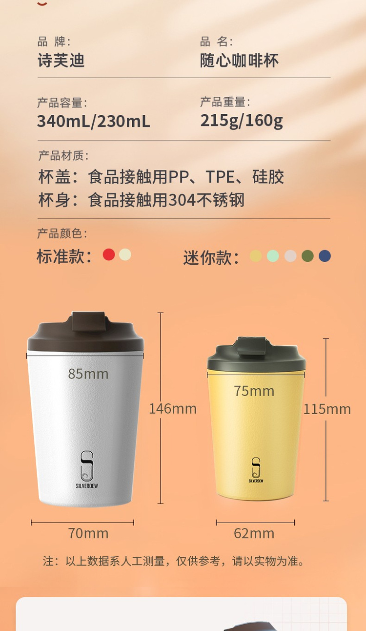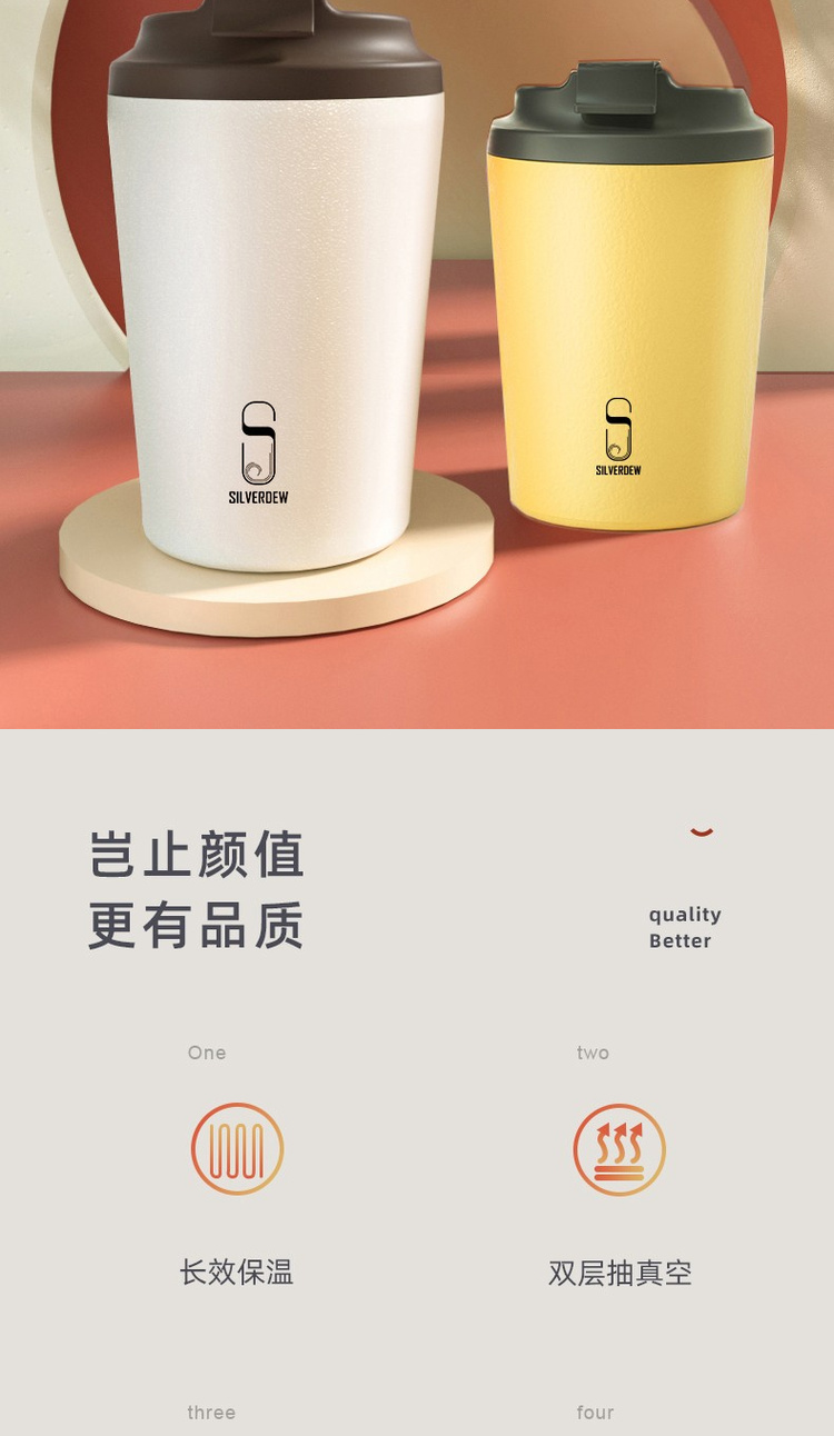 诗芙迪(SILVERDEW)230ml保温咖啡杯便携男女随行杯办公室双层不锈钢车载带盖杯