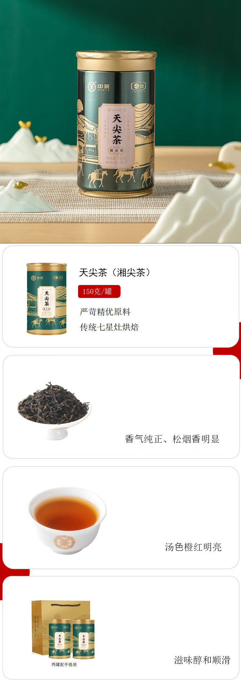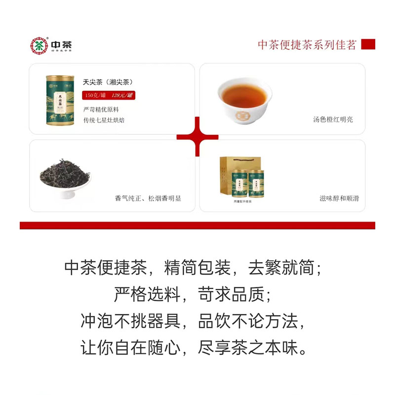 中粮-中茶湖南安化黑茶天尖茶便捷罐装150g/罐/金花饱满/原产地直发