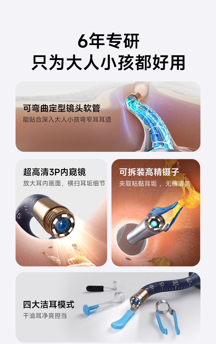 ⑥ 通过可视采耳棒实现可视采耳。