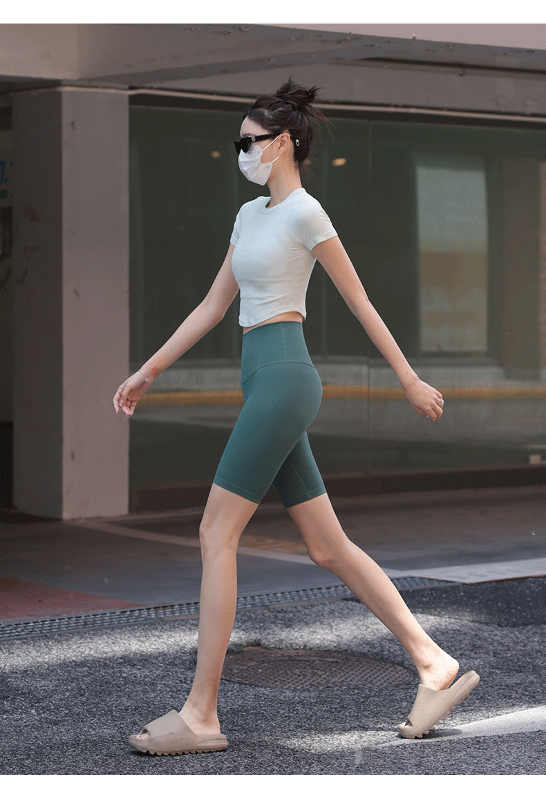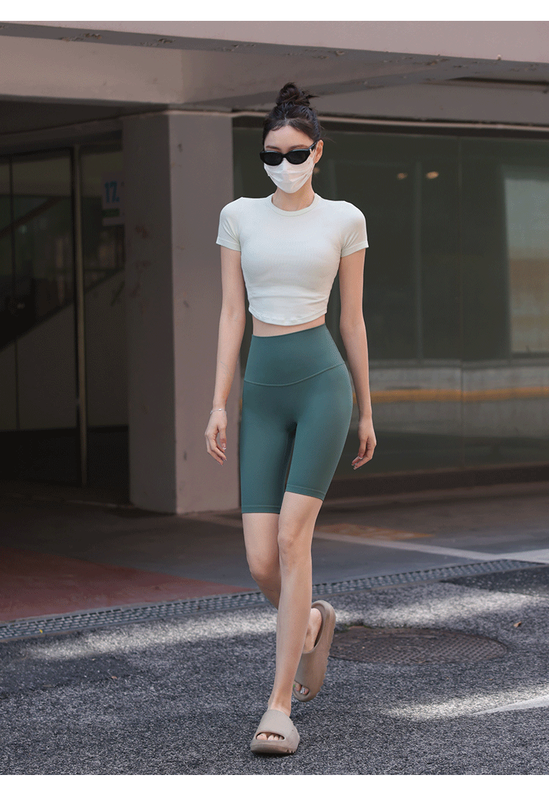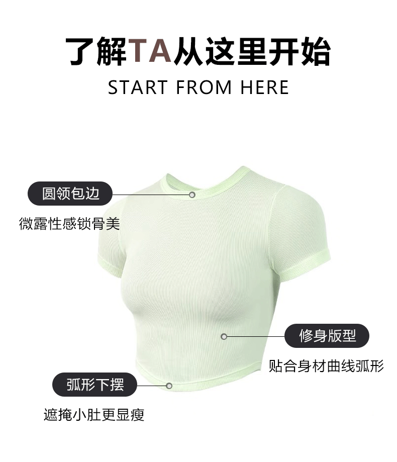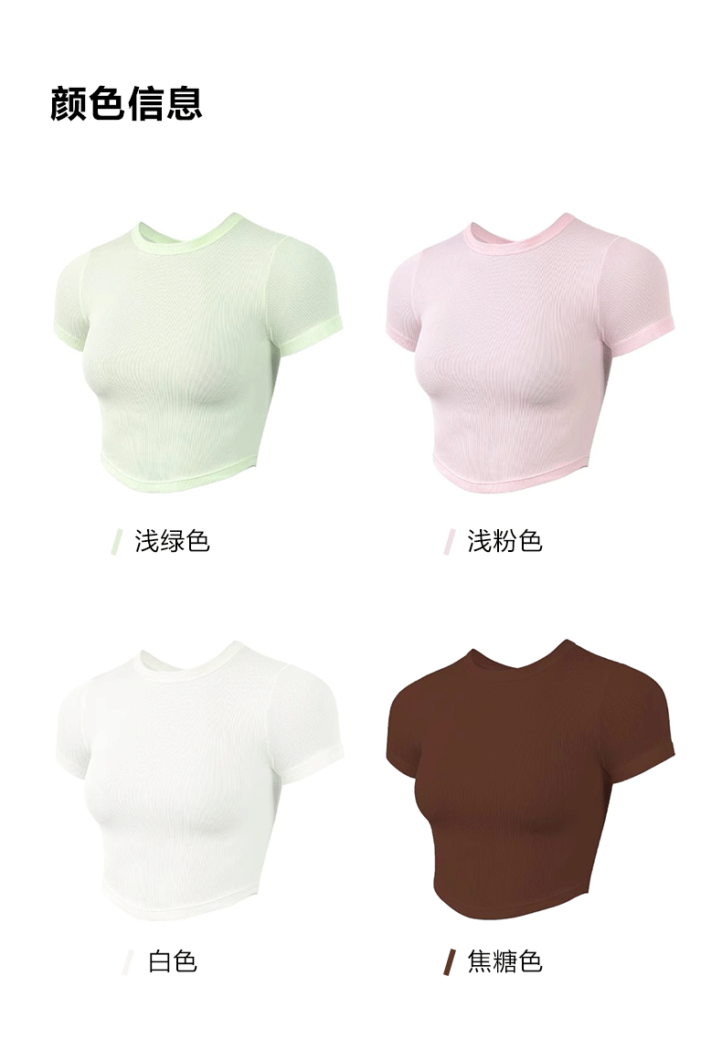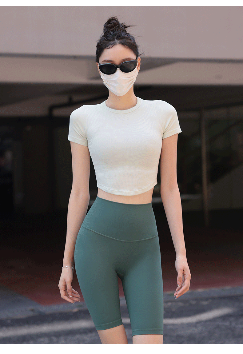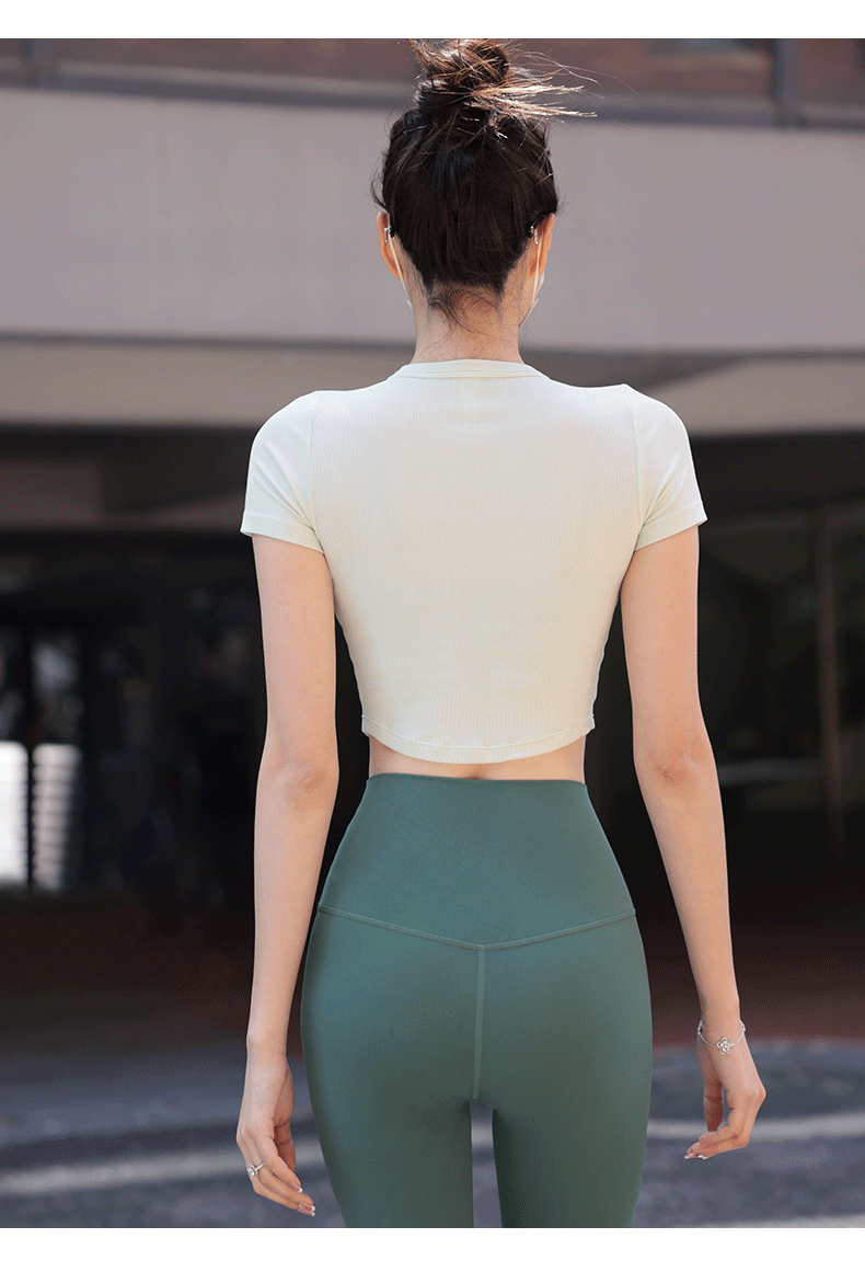 beemen瑜伽服女运动上衣健身速干修身显瘦透气圆领短款短袖t恤夏