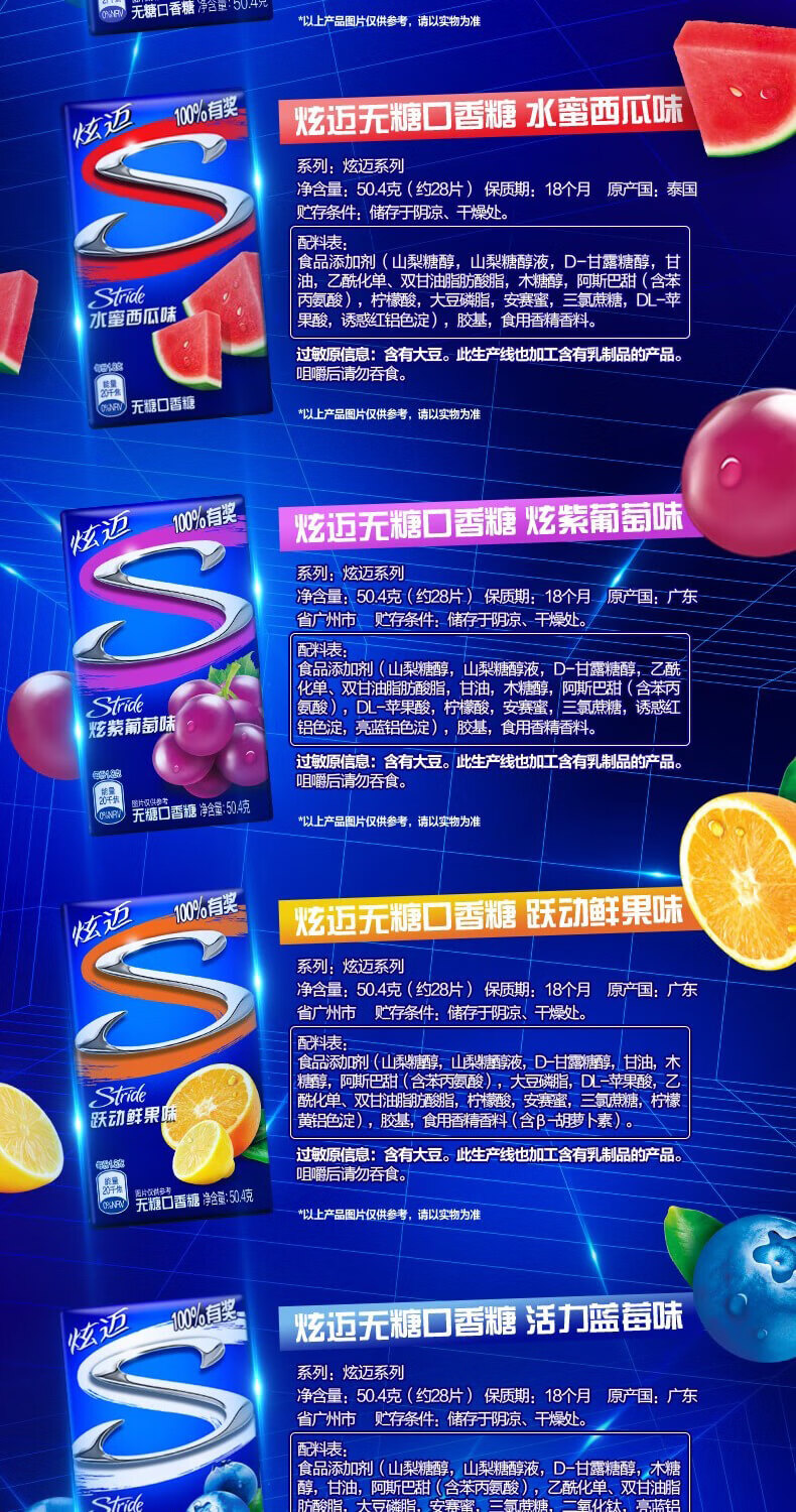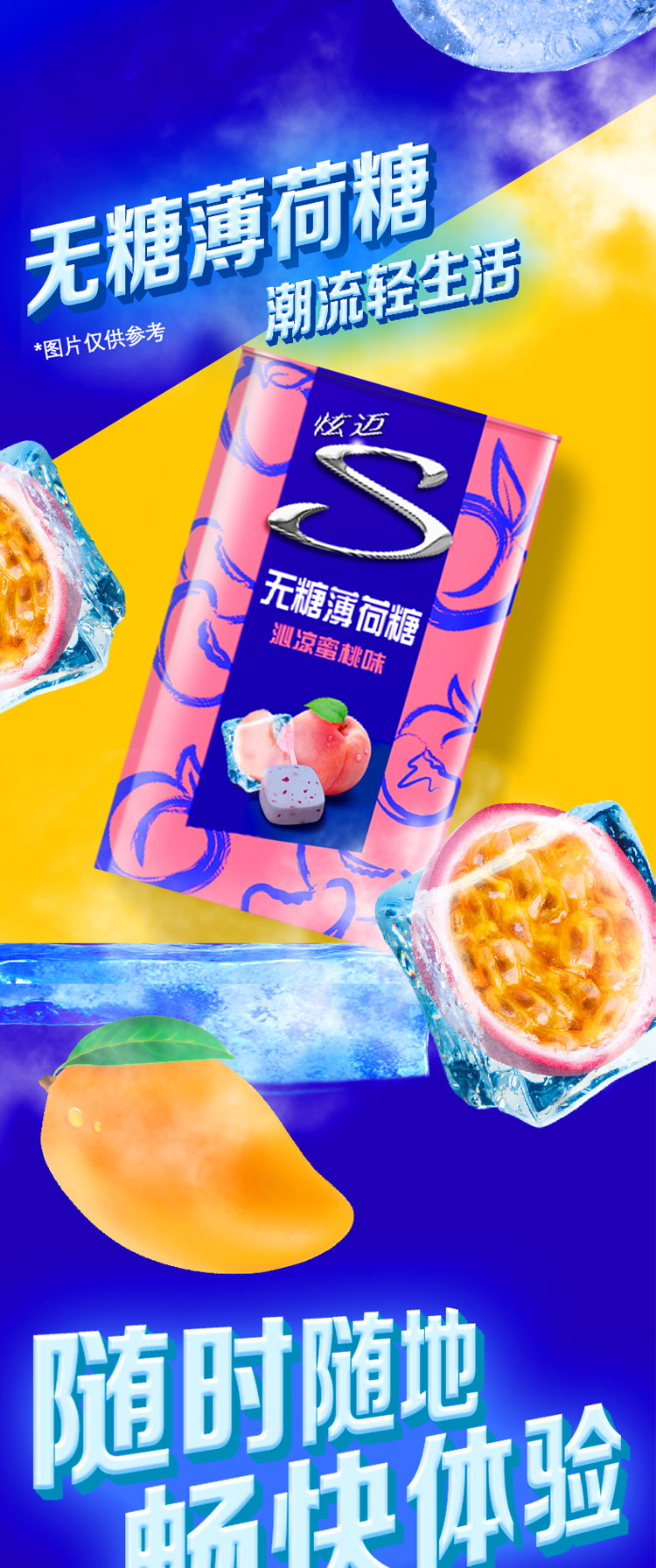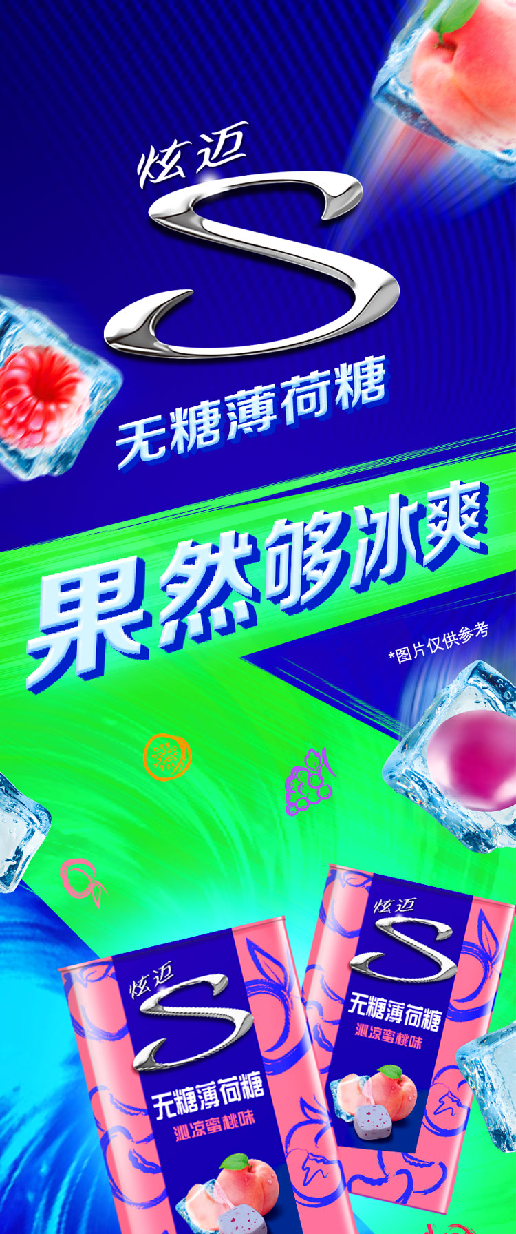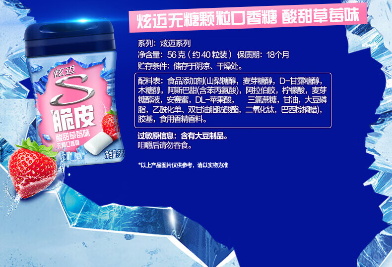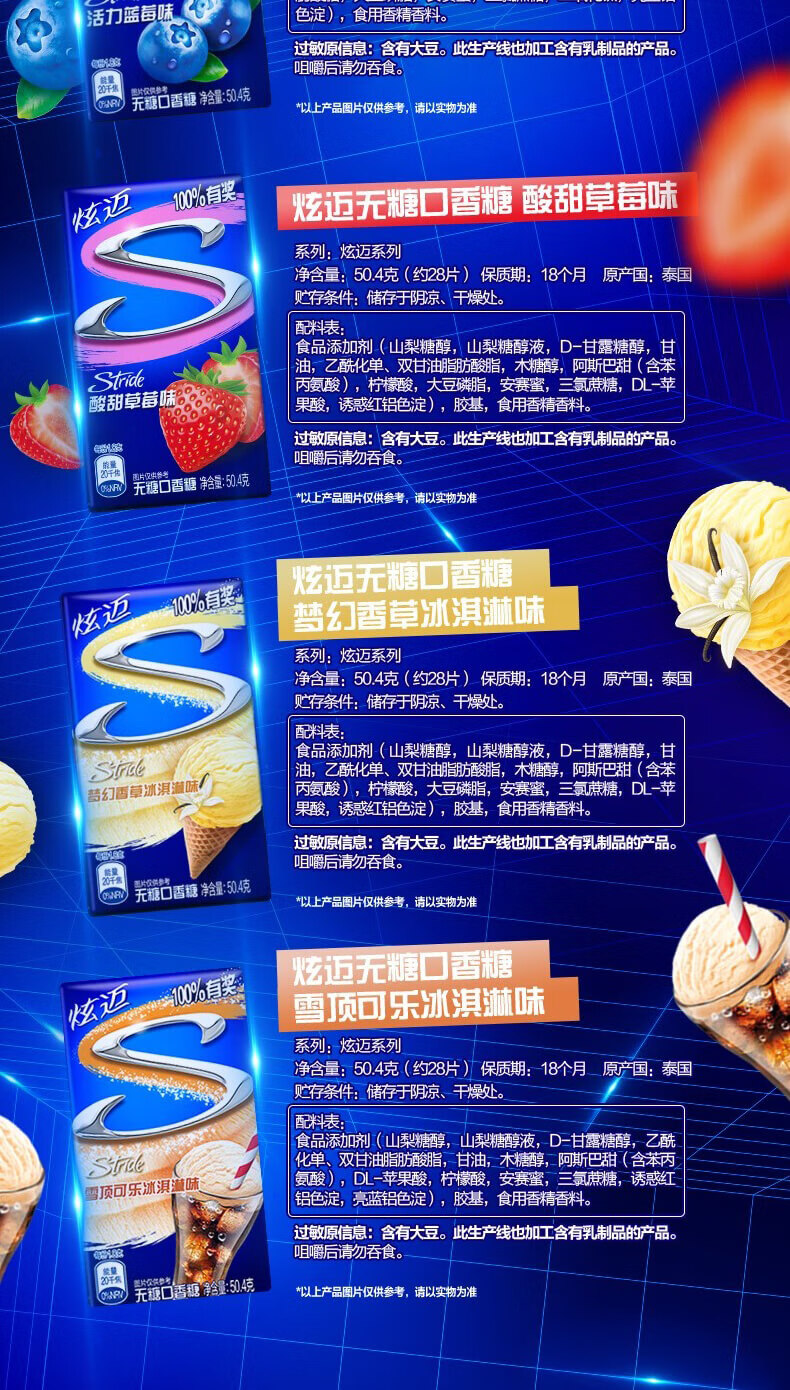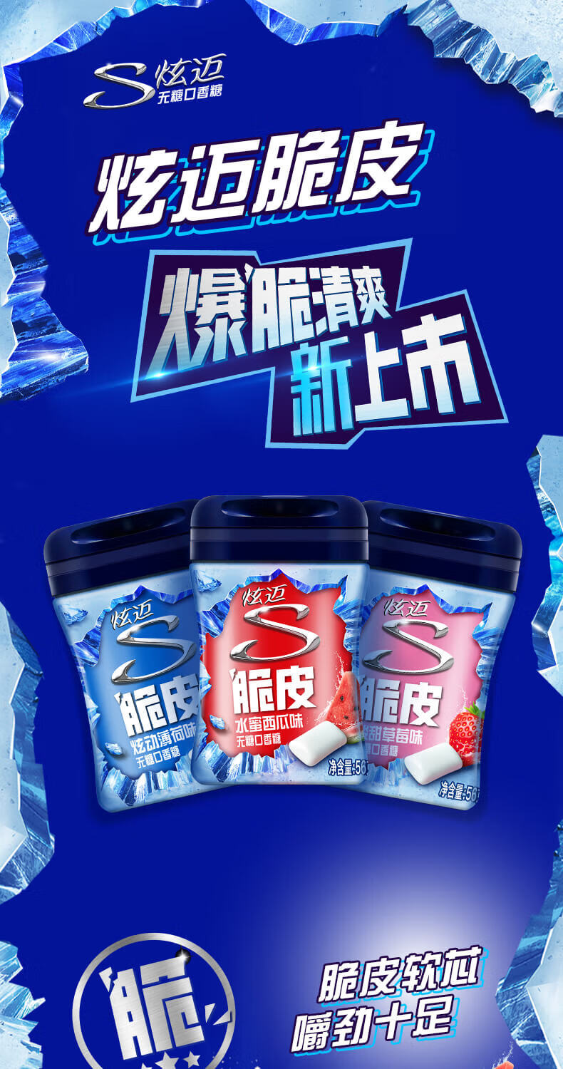 炫迈糖沁凉蜜桃味22.5g炫迈无糖口香糖草莓味40粒炫迈雪顶可乐冰淇淋味28片