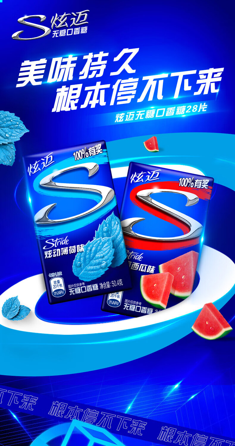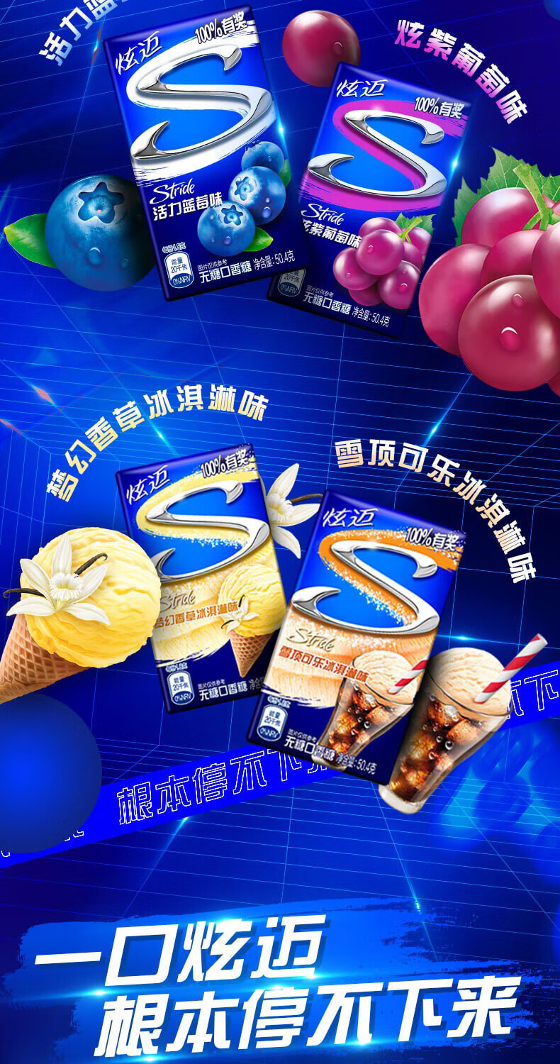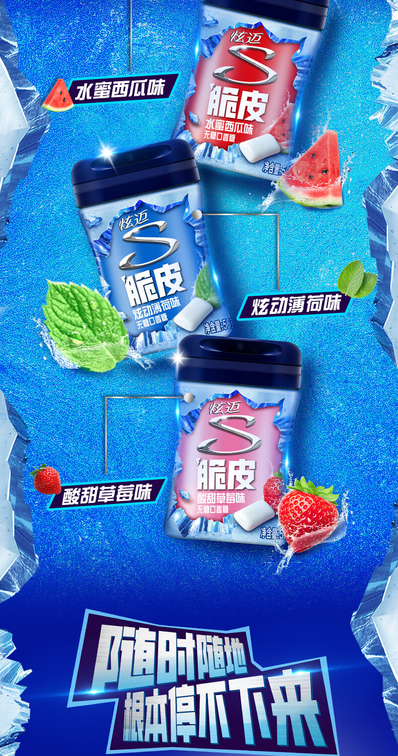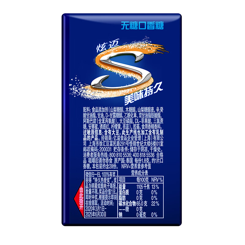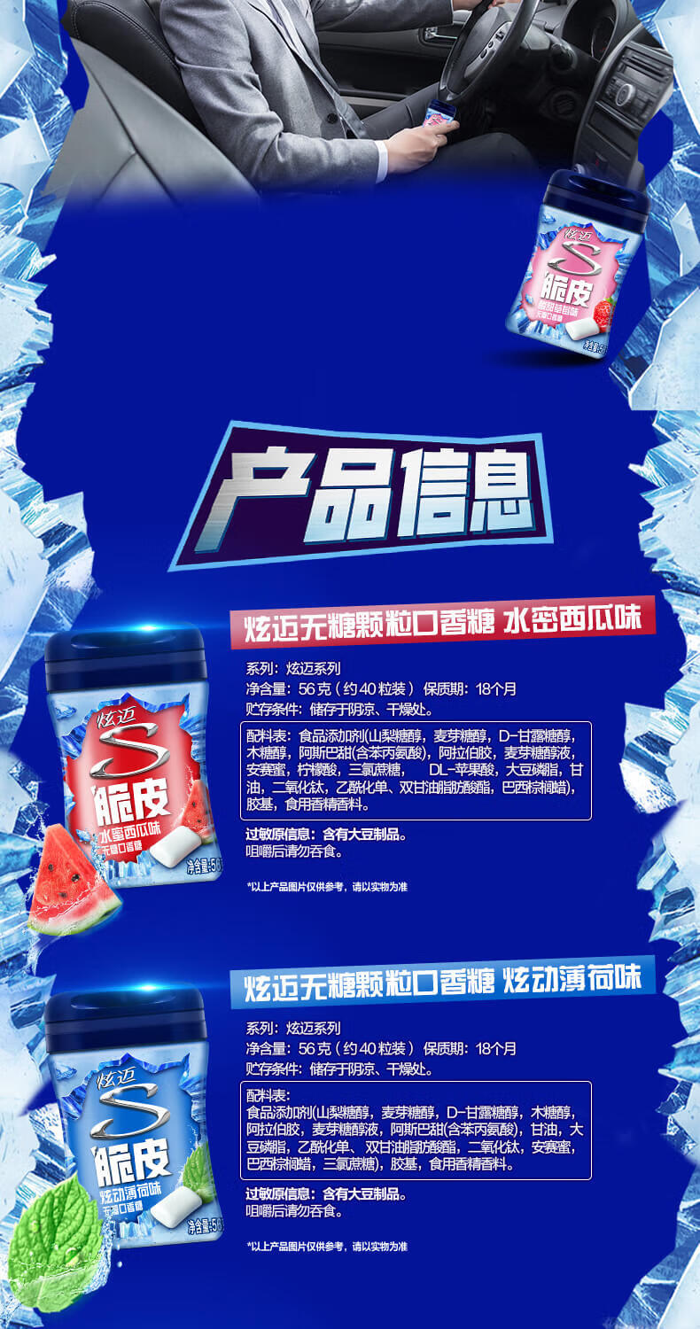 炫迈糖沁凉蜜桃味22.5g炫迈无糖口香糖草莓味40粒炫迈雪顶可乐冰淇淋味28片