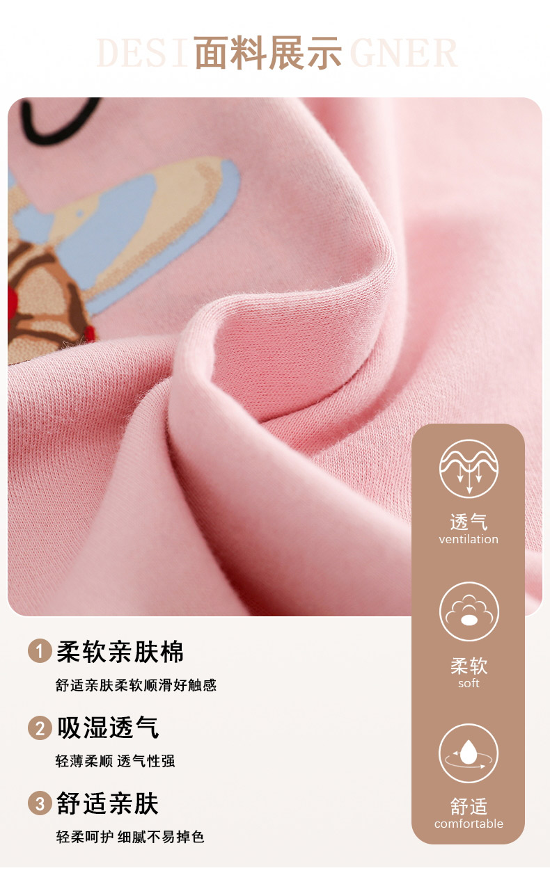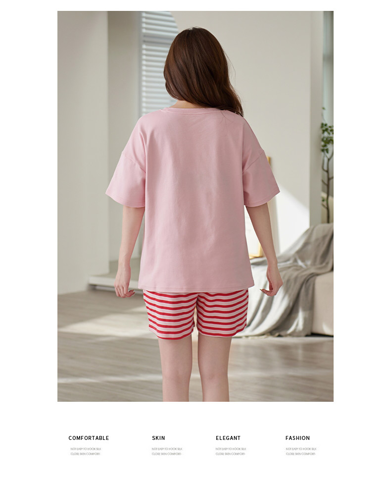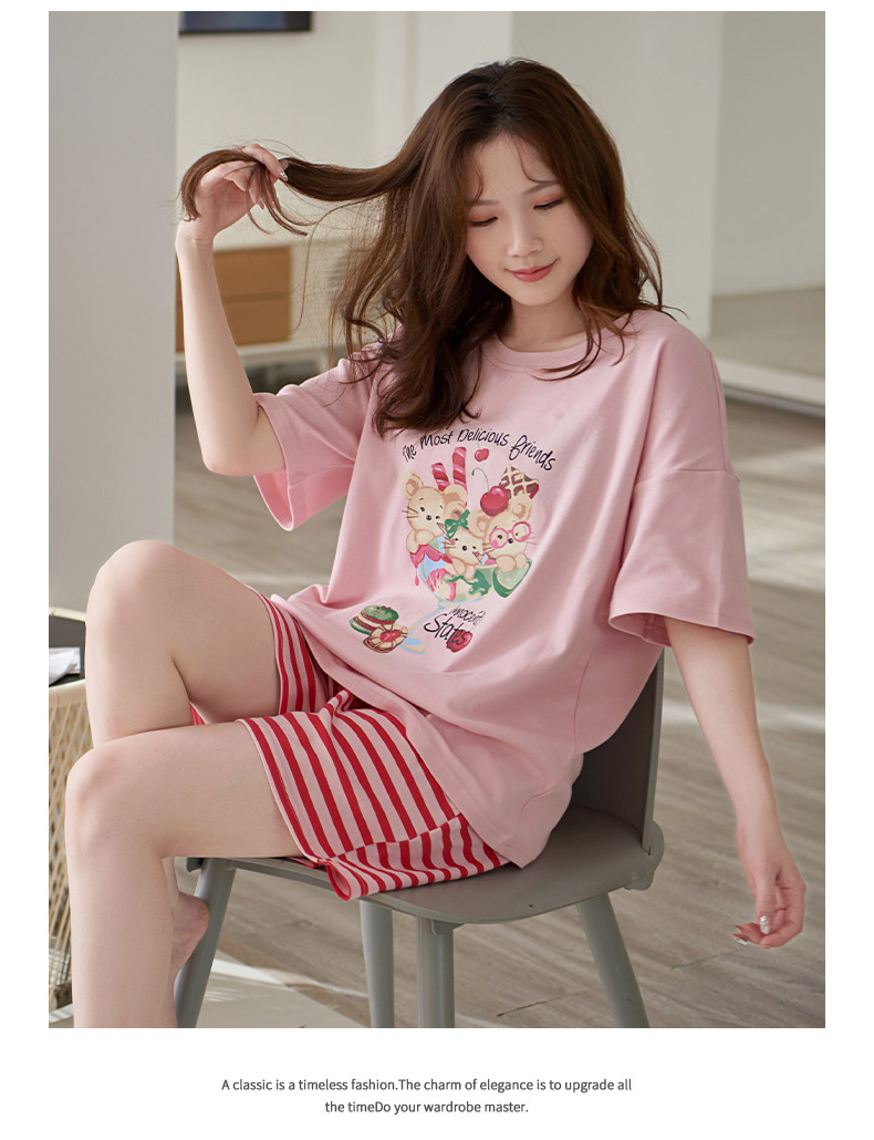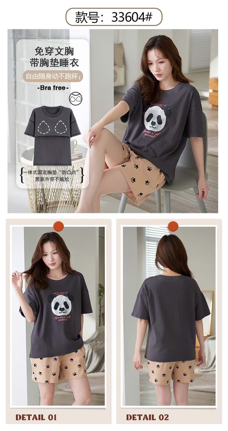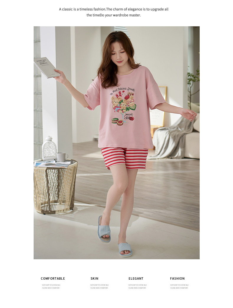 自然醒彩虹牛奶丝(带胸垫)一体睡衣女夏短袖薄款韩范甜美休闲可外穿家居服QH