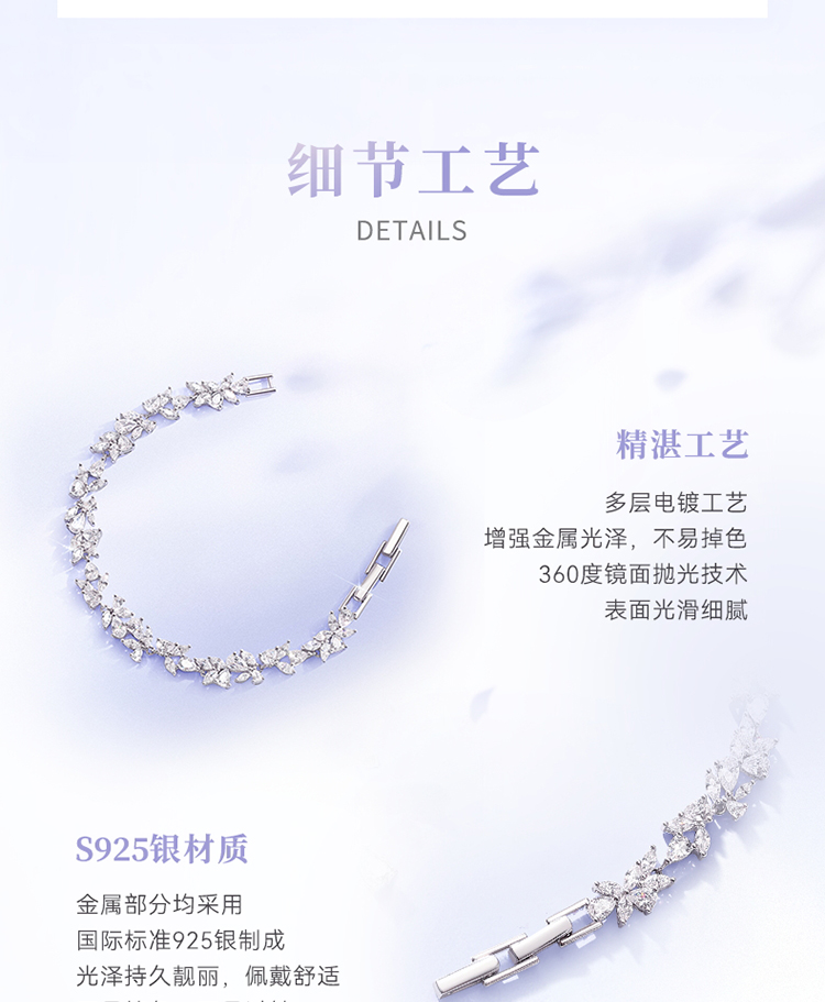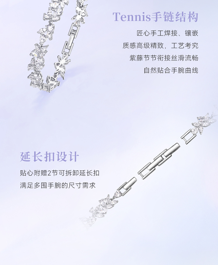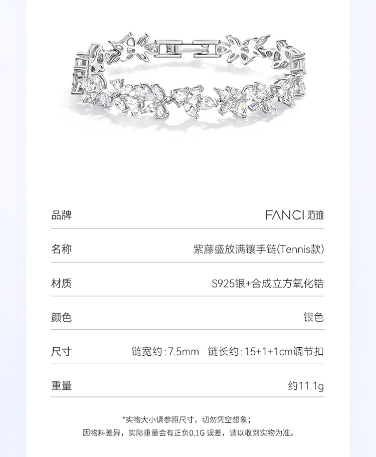 紫藤盛放满镶手链 Fanci范琦 紫藤花系列 925银饰轻奢生日礼物 下单赠精美礼盒 顺丰空运+运费险
