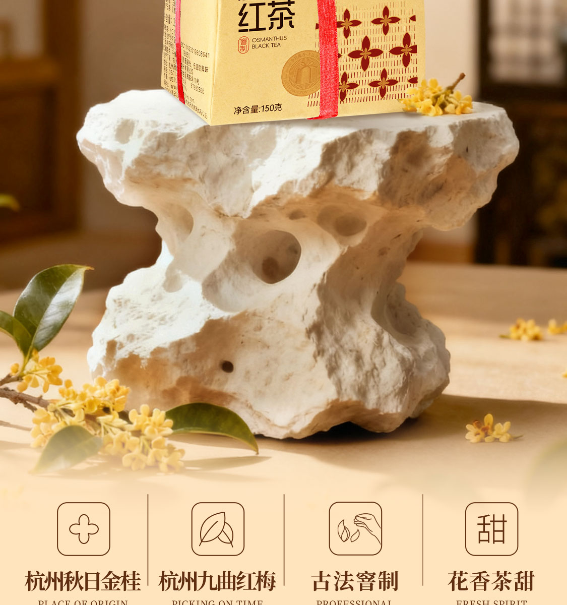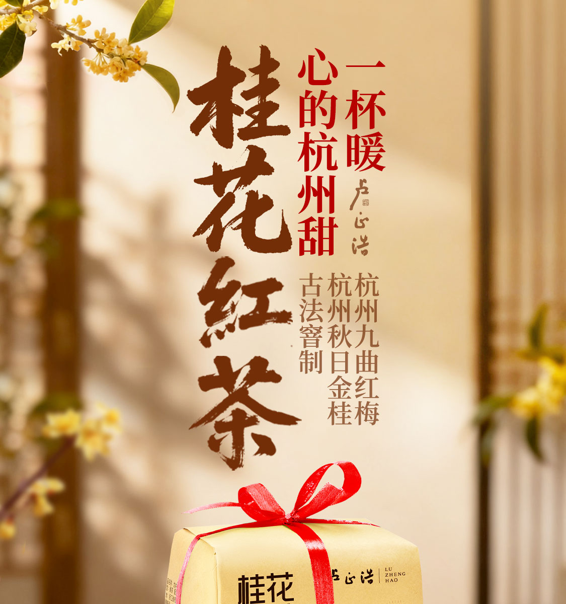 卢正浩杭州桂花红茶九曲红梅150g传统窨制纸包