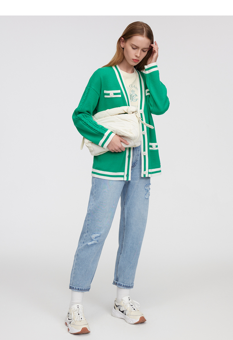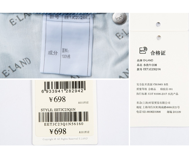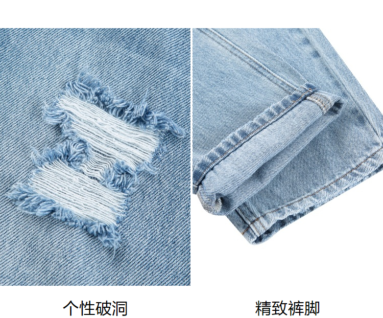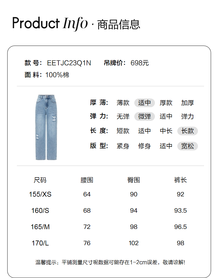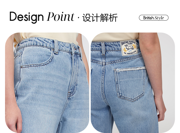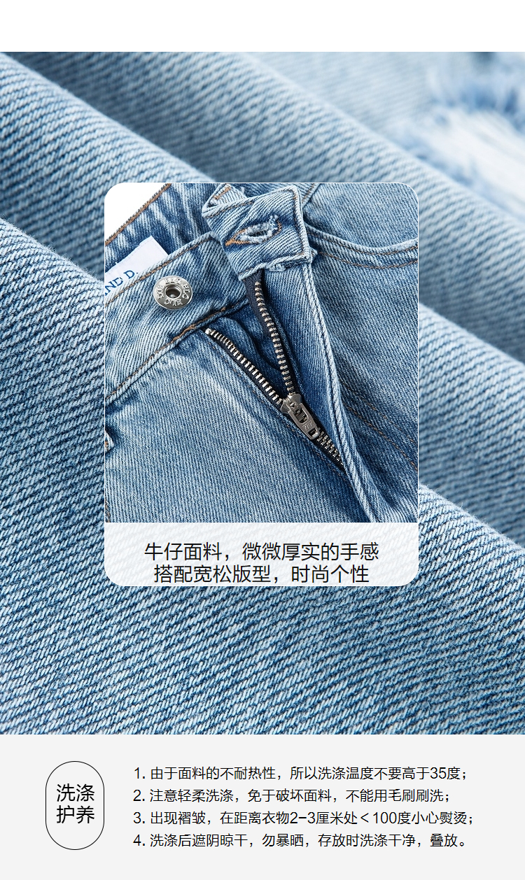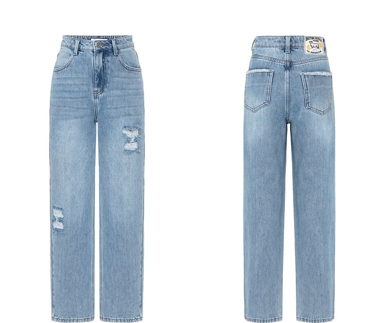 ELAND衣恋2022年春季新款高腰宽松设计感磨毛破洞牛仔裤萝卜裤女EETJC23Q1N