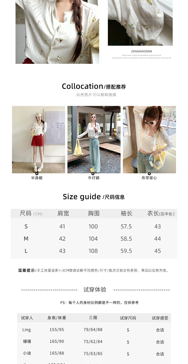 <曾小咸推荐>法式刺绣针织开衫设计感外套女