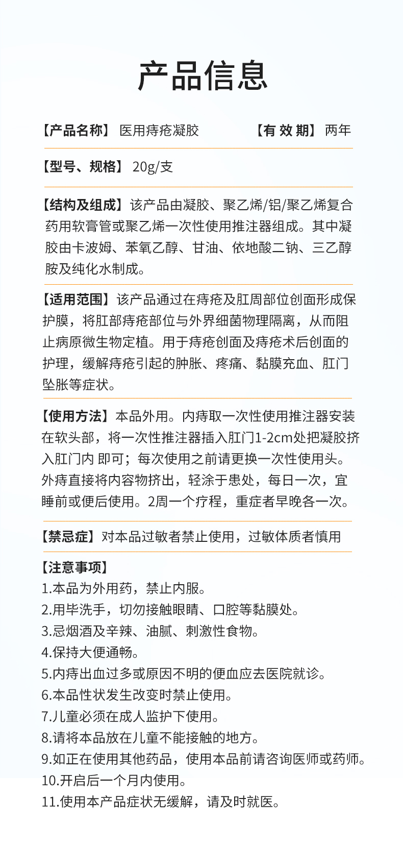 康速达医用痔疮凝胶适用痔疮膏肿涨疼痛肛门坠胀缓解粘膜内外混合