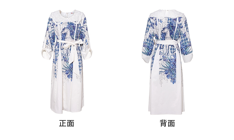 两三事晚春叙景2025春新款印花裙摆拼接立体花朵连衣裙配领带别针S25CLY206