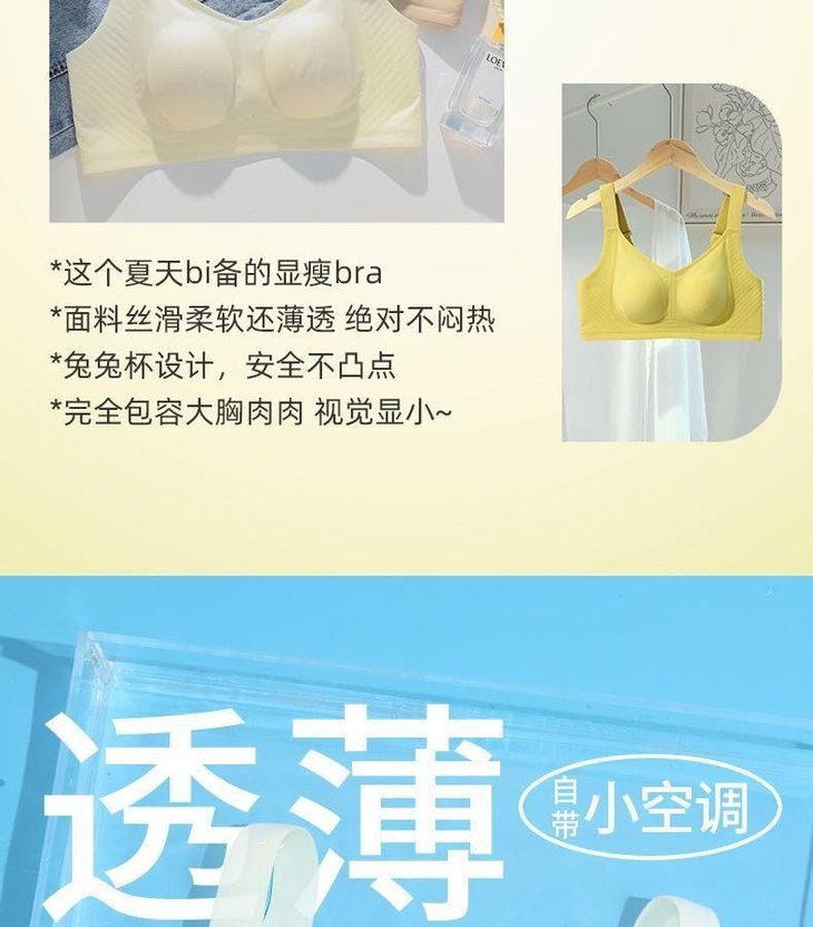 【夏季薄款胸罩文胸无钢圈】兔耳杯超薄无痕支撑大胸显小内衣透气聚拢