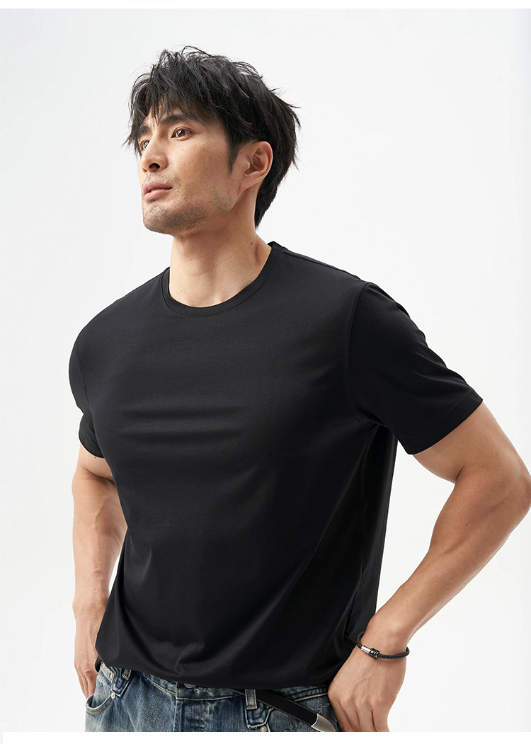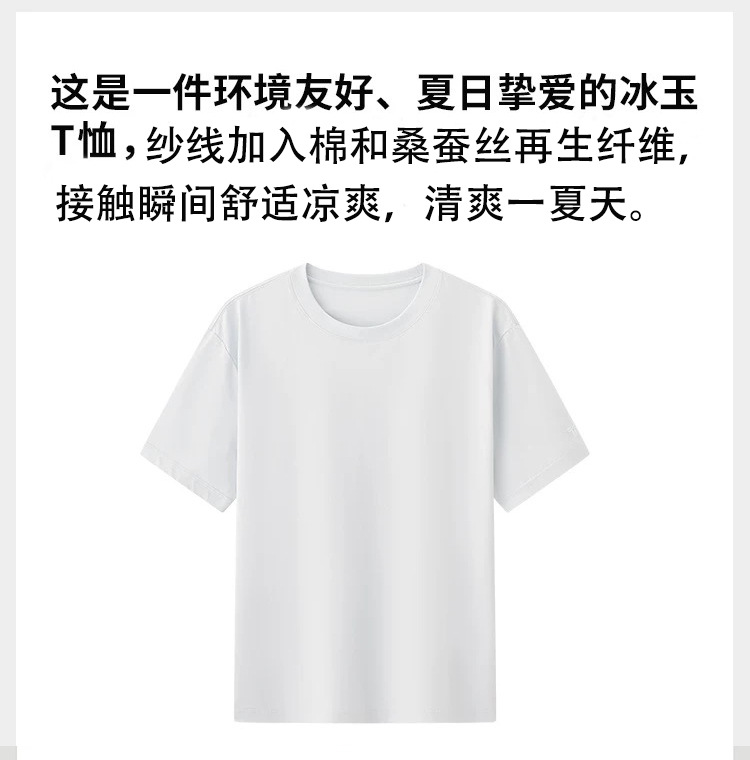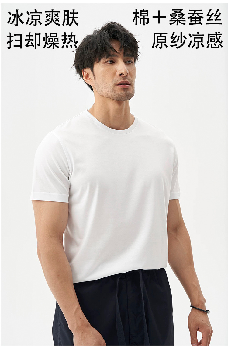 桑蚕丝短袖T恤男夏宽松凉感真丝薄速干上衣圆领纯色简约打底体恤衫夏季爆款