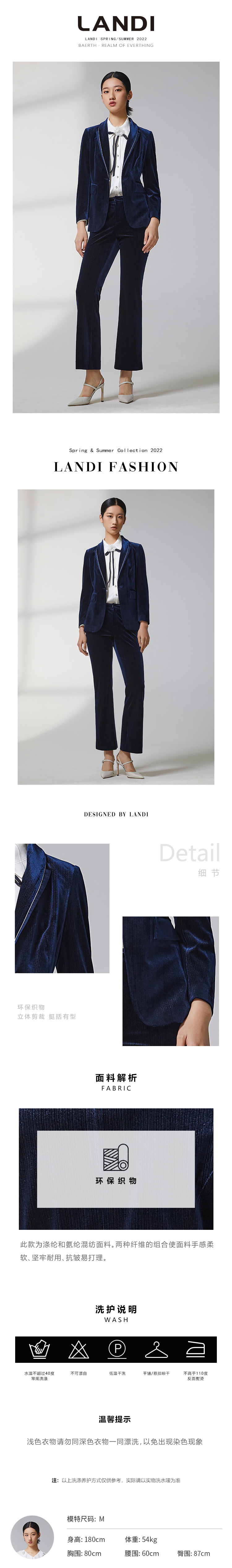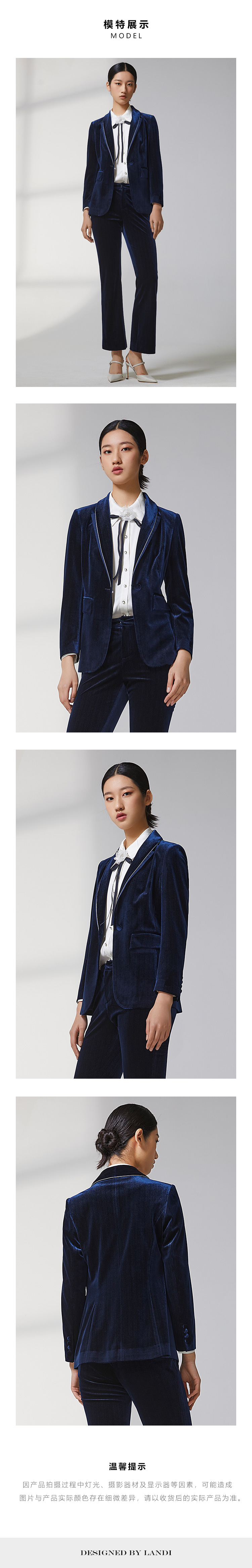 蓝地双层青果领一粒扣西服外套BLWCT025S00