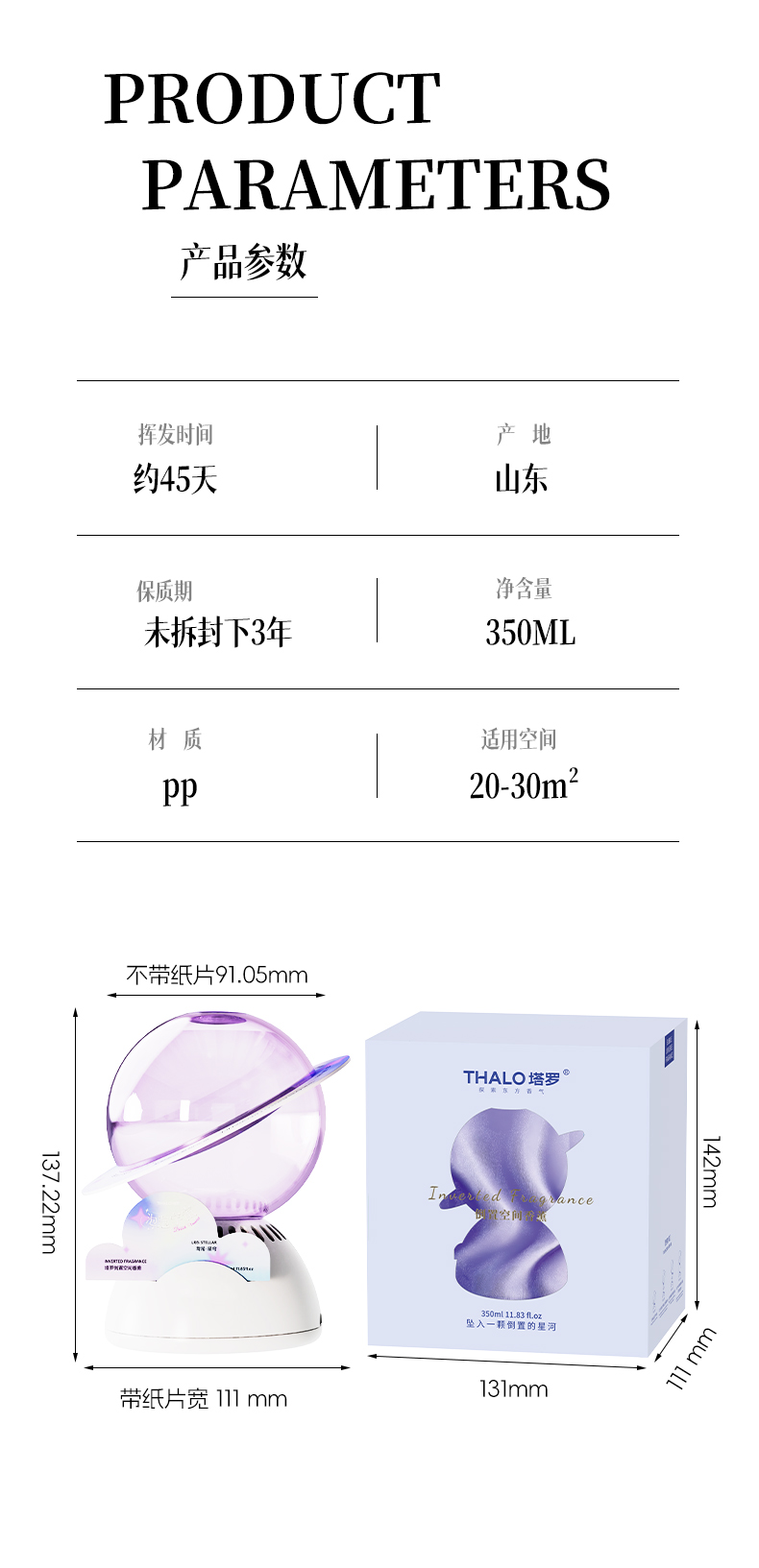 【品名】塔罗 泡泡宇宙倒置香薰 超长释香 持久留香 350ml/盒 【规格】 鸢尾·星穹、玫瑰·星境、白茶·星晴、兰栀·星语 【产地】国内 【发货包装】独立包装 【发货地】山东 【发货快递】中通、圆通、申通、韵达随机发 【不发货区域】新疆、西藏、港澳台 【补邮费地区】广西、云南、甘肃、青海、宁夏、内蒙、海南+5元 北京、上海+1.5元 【发货时效】48-72小时,周末节假日顺延 |