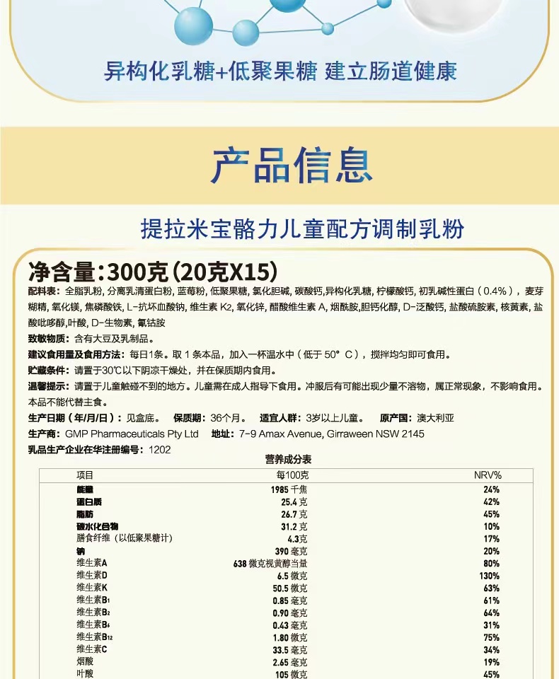 提拉米宝骼力儿童配方调制乳粉