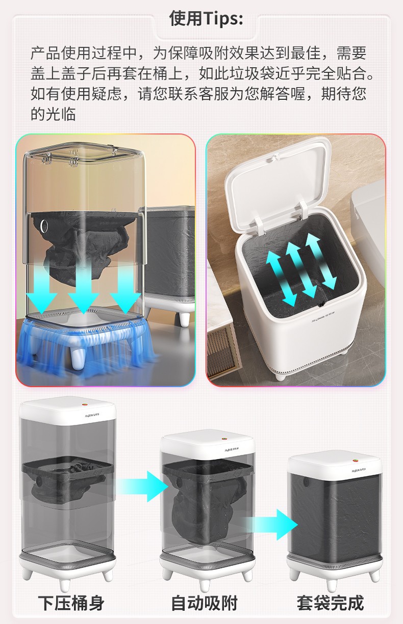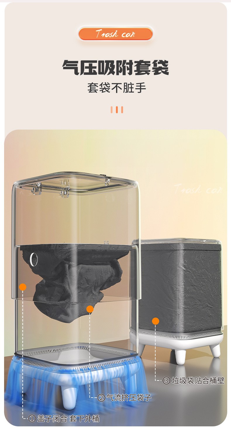 【免充电自吸套袋垃圾桶!】新款卫生间家用垃圾桶 厕所专用带盖大容量客厅厨房纸篓,告别脏手触碰,垃圾袋紧贴桶壁,超大容量💪轻松搞定全家垃圾
