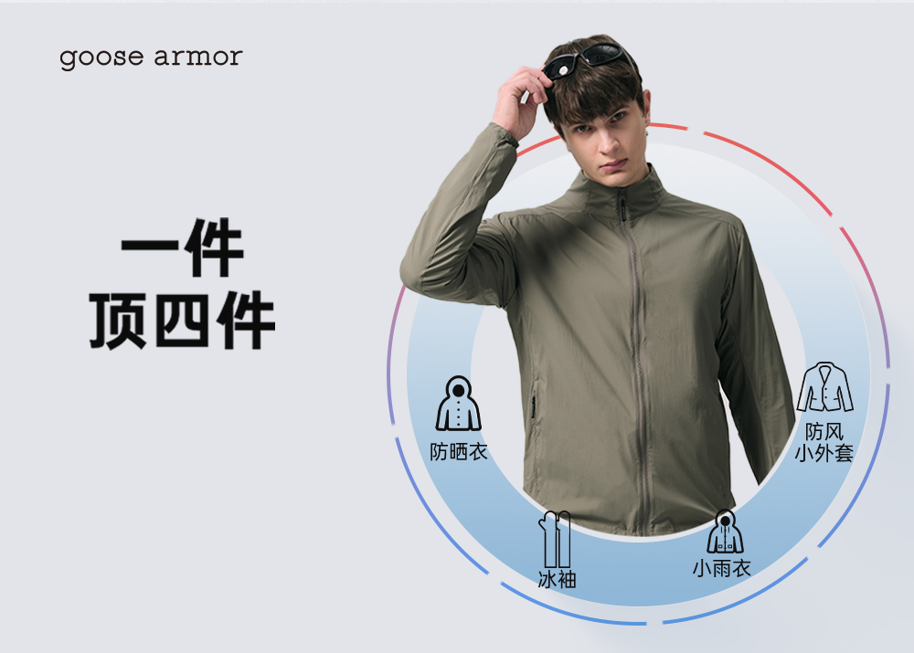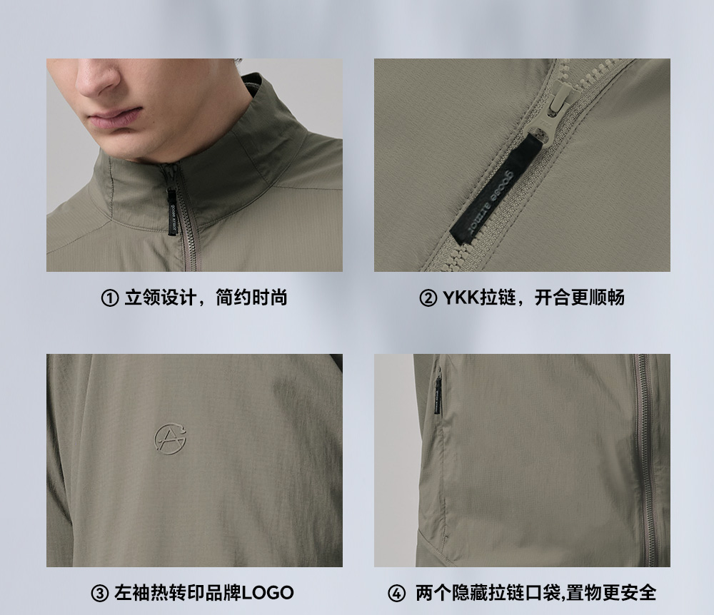 天石鹅铠甲春夏立领修身防晒风壳防外套晒衣男防紫外线户外运动G428
