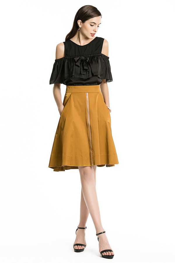 EMC亿美丞 卡其色A字高腰裙 1109