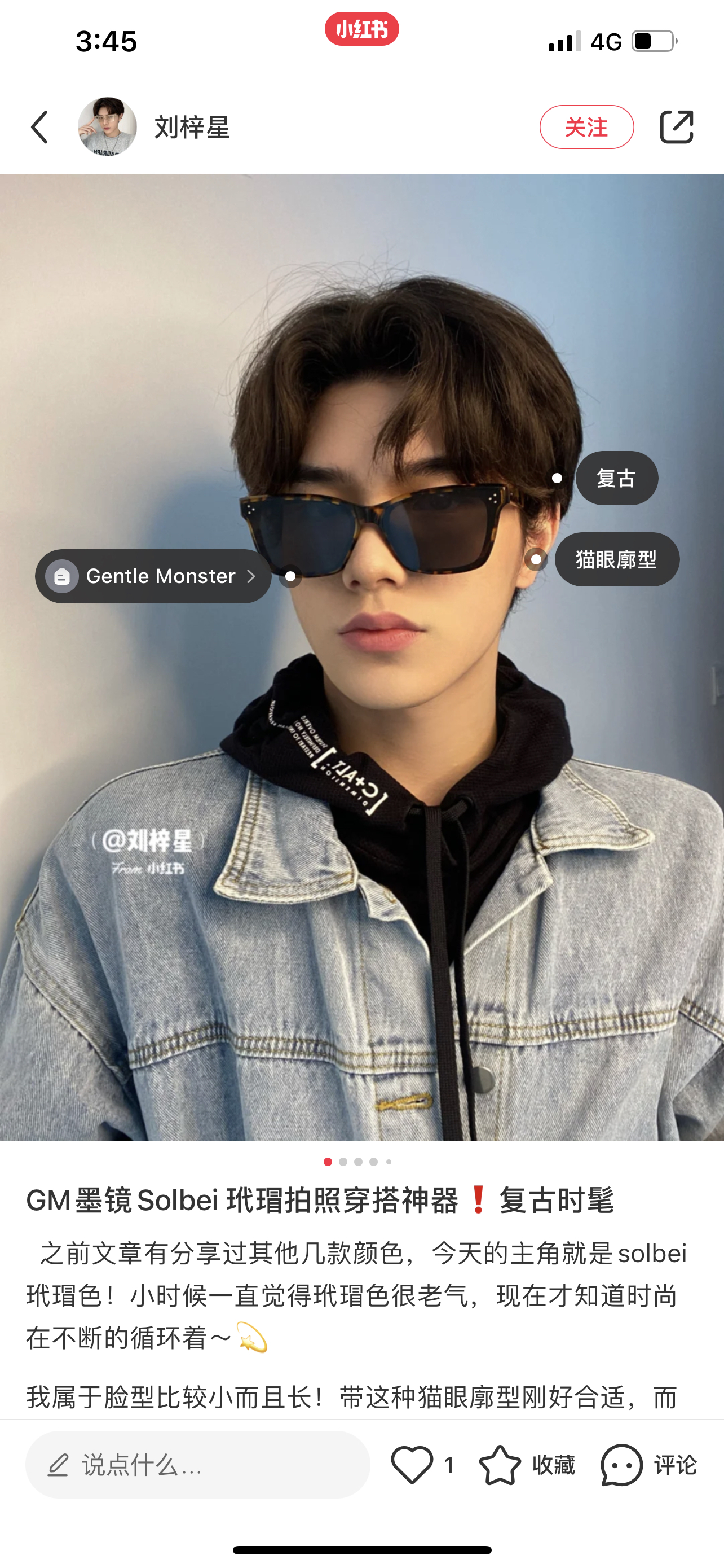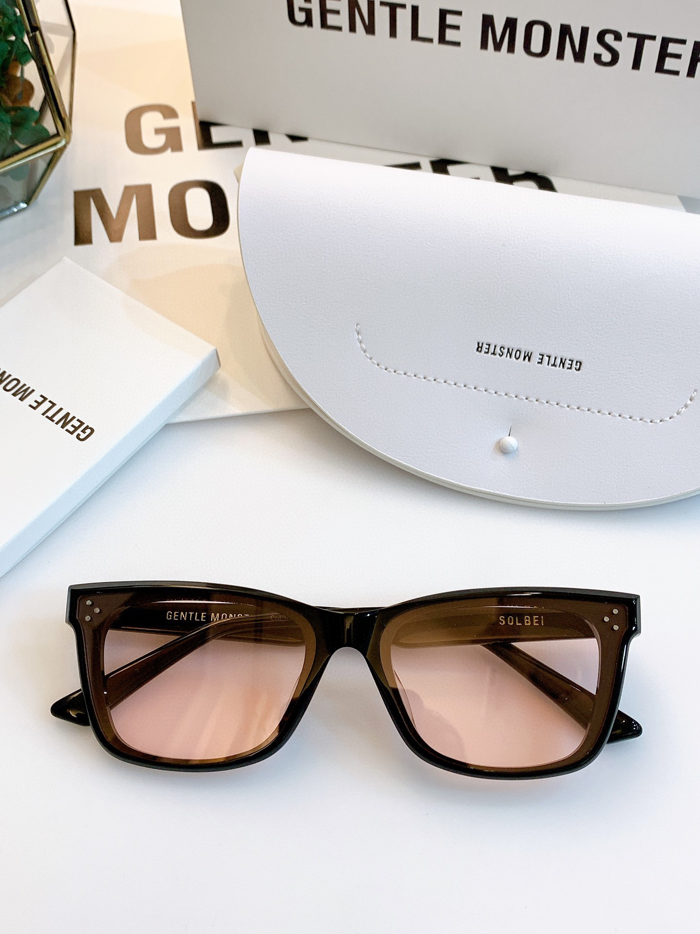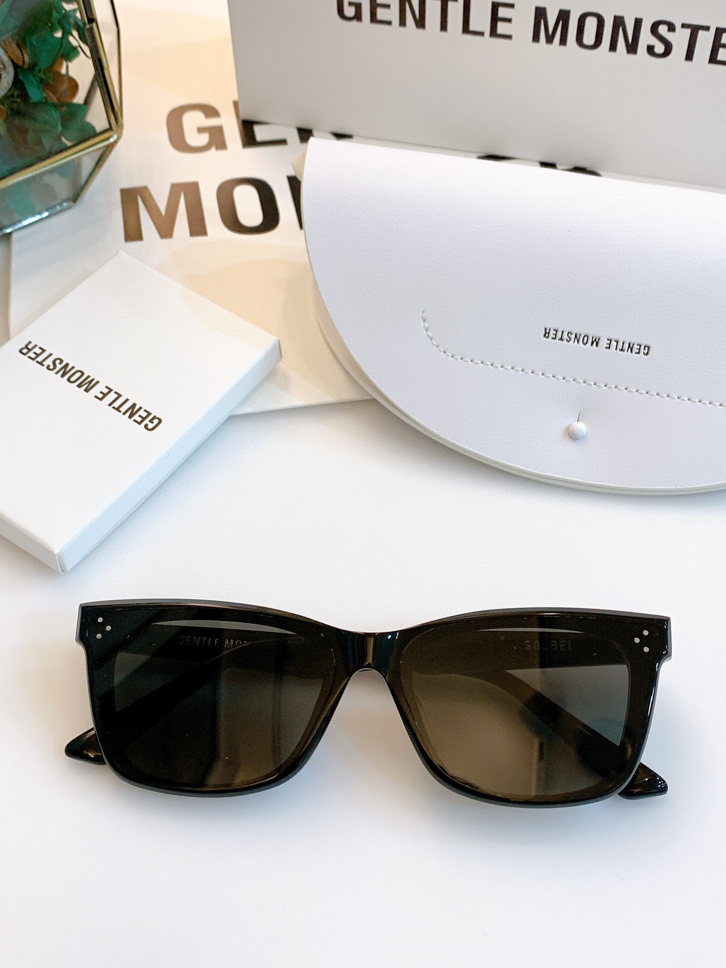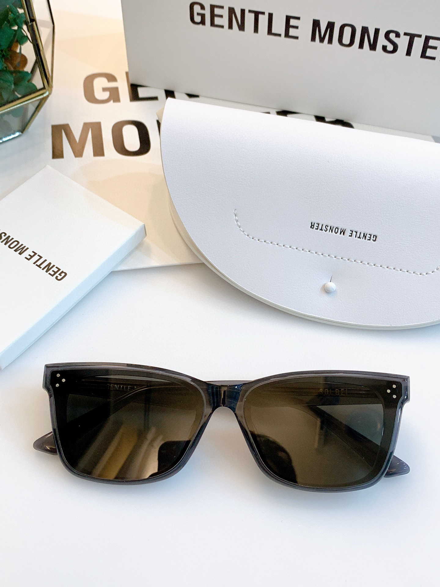 🔺GENTLE MONSTER🔻齐色~SOLBEI 为猫眼廓形,镜框采用板材材质,是FLATBA太阳镜。前框上端曲线上挑,镜片两端有金属点装饰,镜腿饰有品牌LOGO。太阳镜整体轻薄利落,营造了都市时髦风格。黑色蔡司镜片提供有效UV防护。