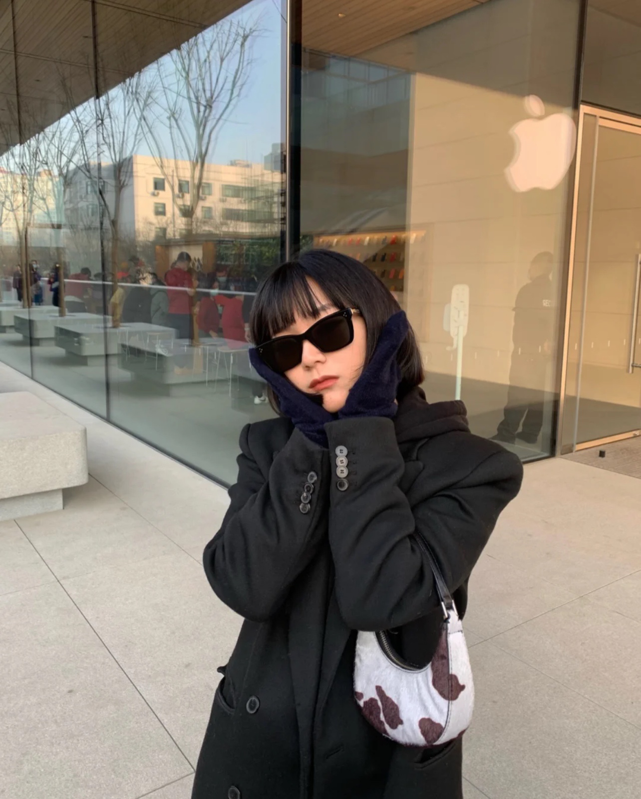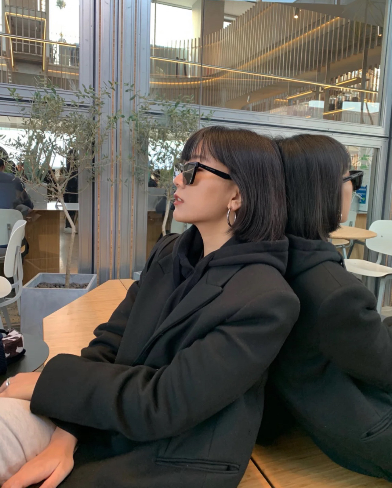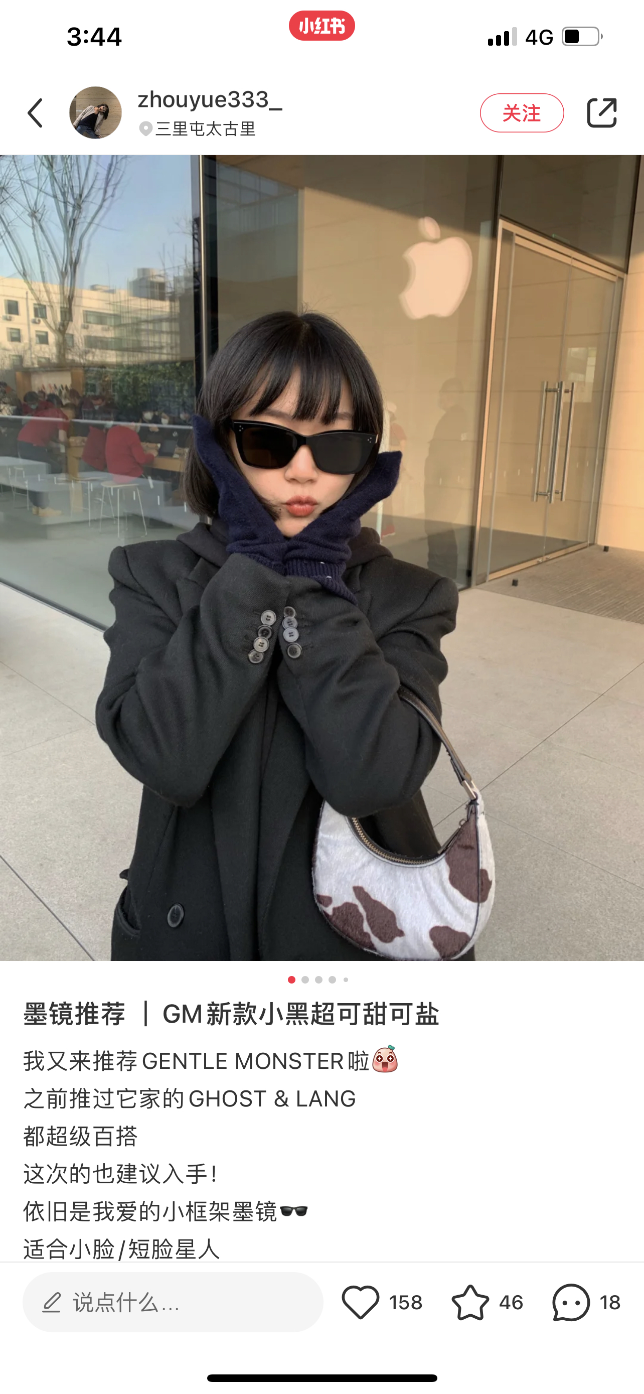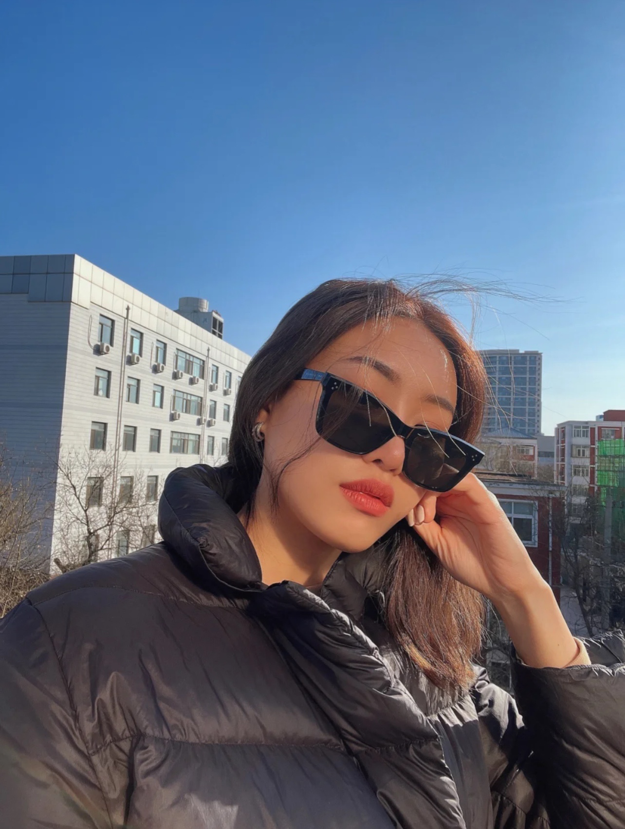 🔺GENTLE MONSTER🔻齐色~SOLBEI 为猫眼廓形,镜框采用板材材质,是FLATBA太阳镜。前框上端曲线上挑,镜片两端有金属点装饰,镜腿饰有品牌LOGO。太阳镜整体轻薄利落,营造了都市时髦风格。黑色蔡司镜片提供有效UV防护。