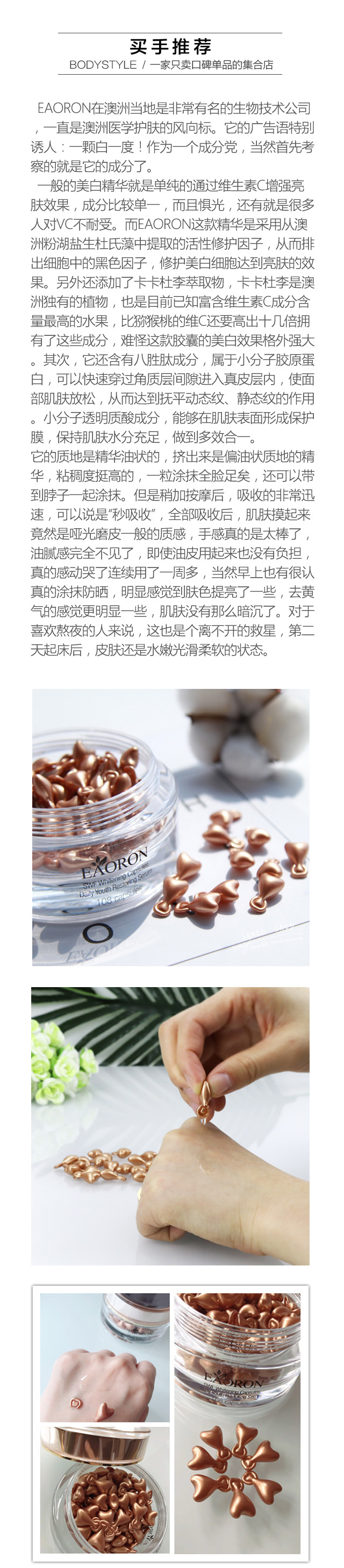 【抄底囤货】澳洲eaoron精华胶囊面部水光抗皱补水润白胶囊亮白淡斑修复 108颗/*2盒