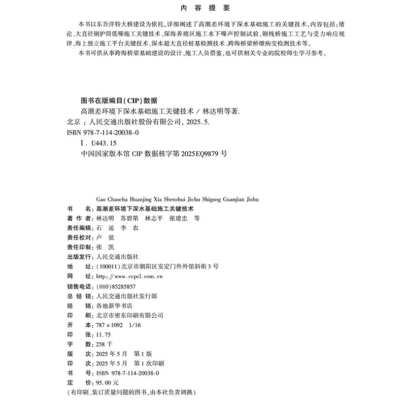 书名:高潮差环境下深水基础施工关键技术