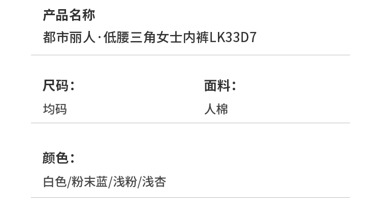 都市丽人基础系列人棉三角裤女士内裤低腰三角裤LK33D7