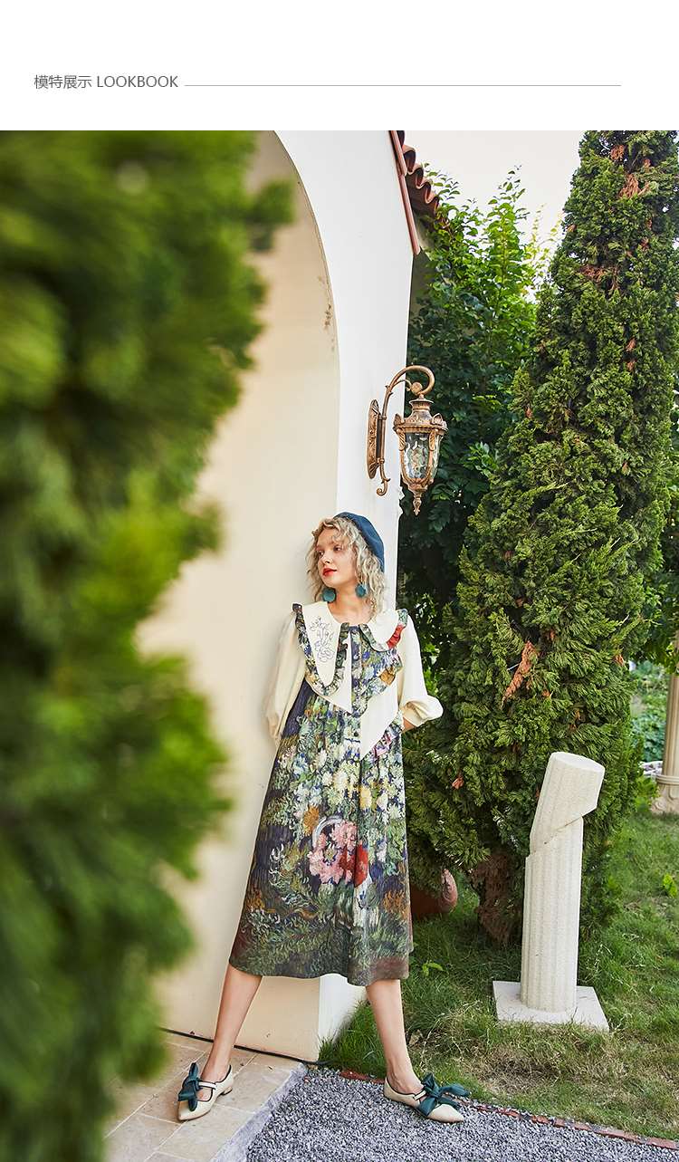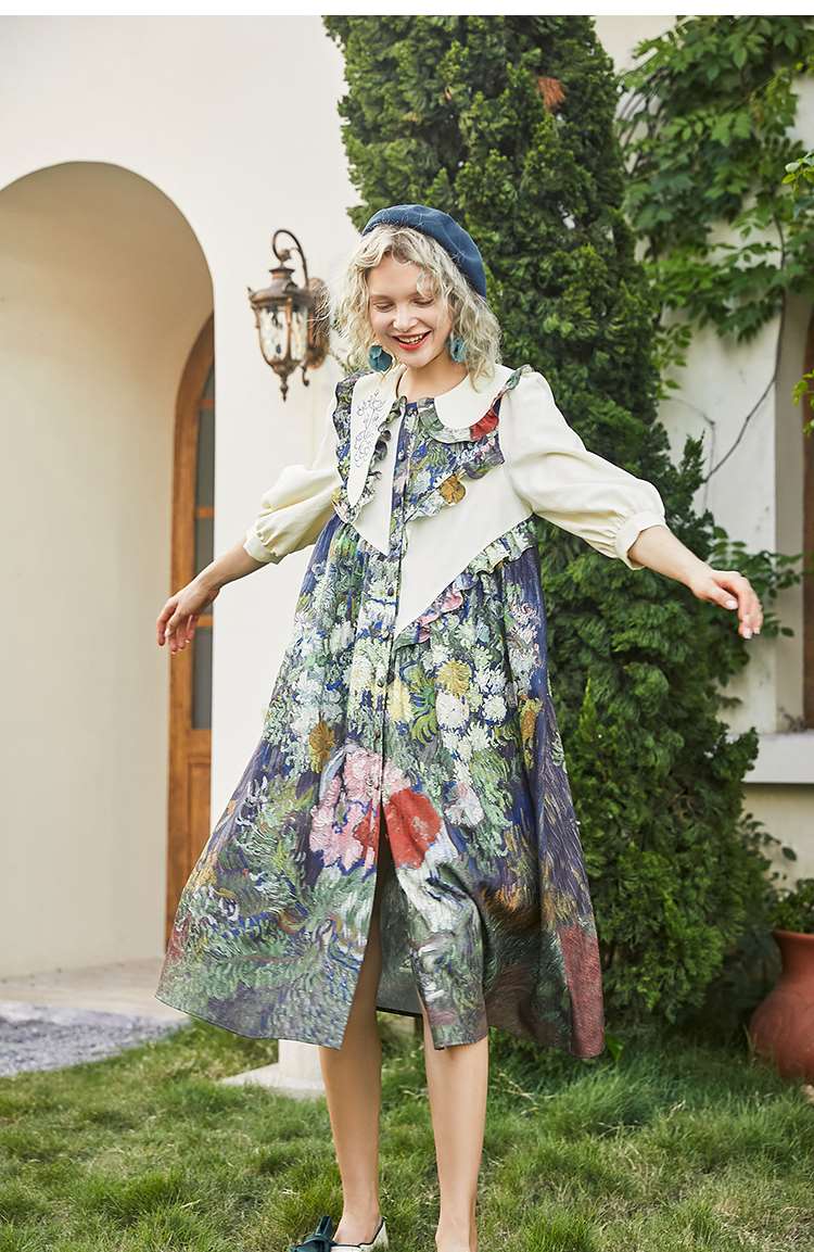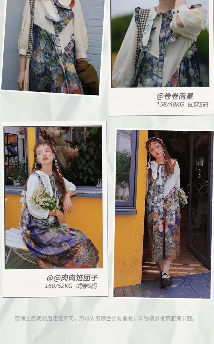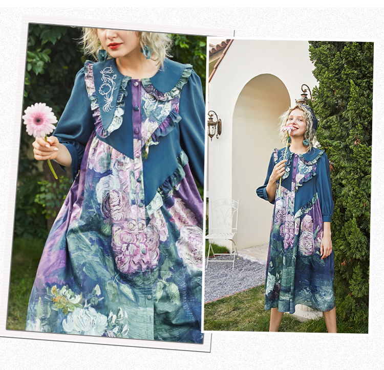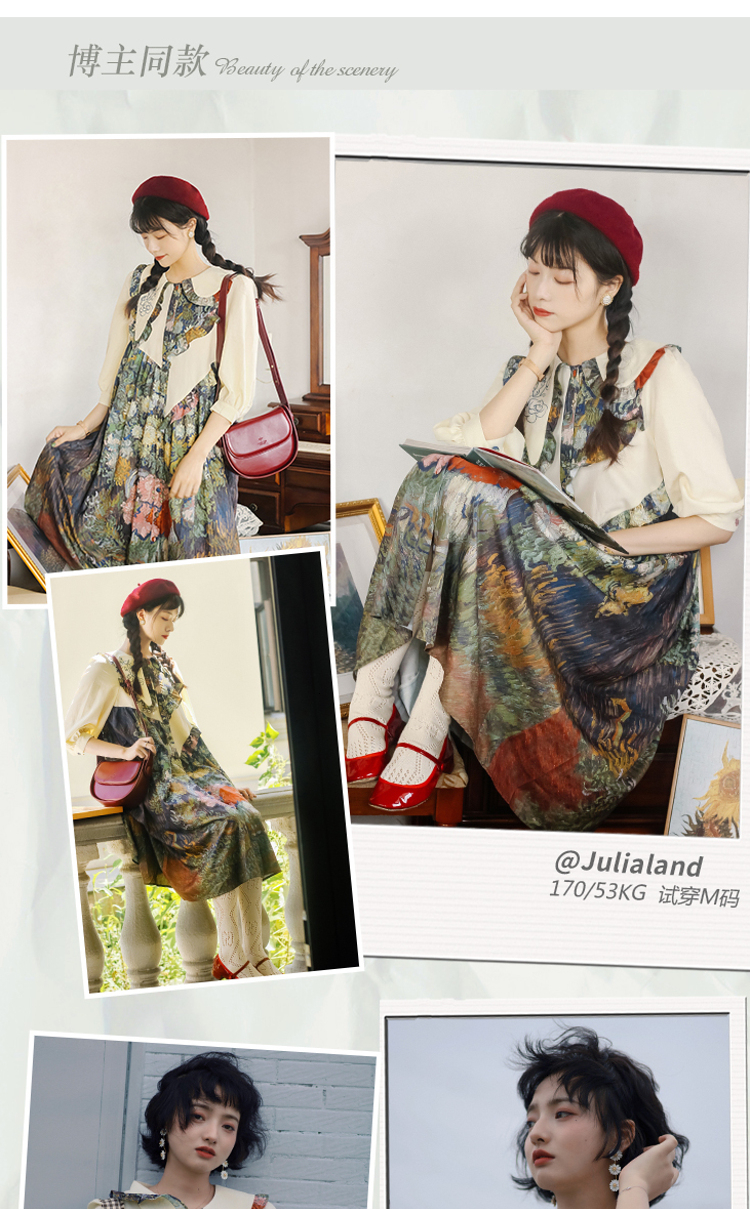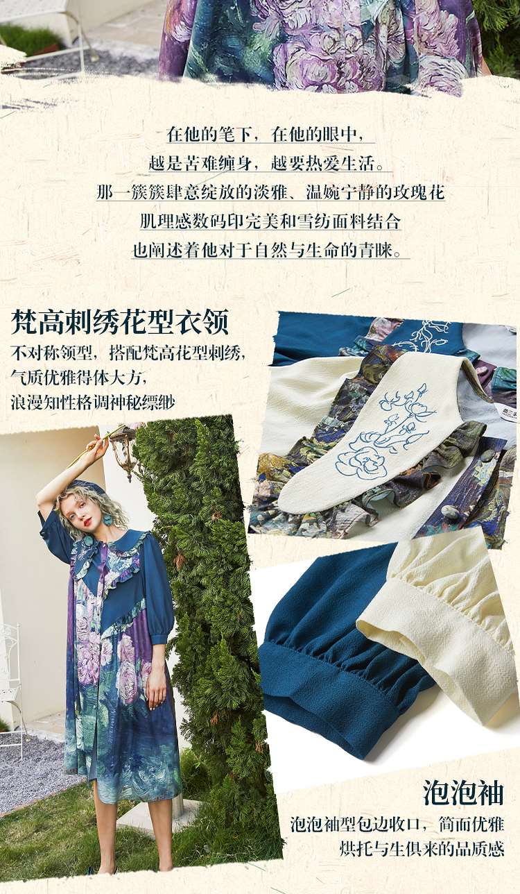 连衣裙 两三事梵高艺术衣铃悬花秋季新款复古连衣裙女气质设计感长款