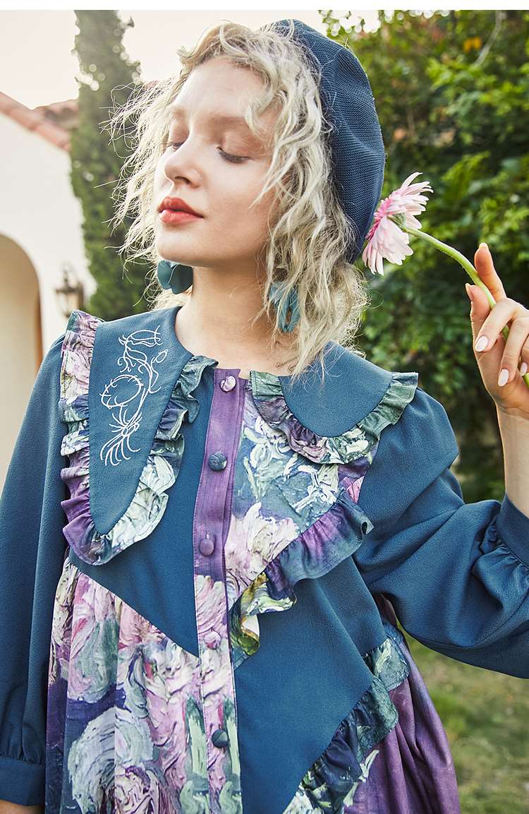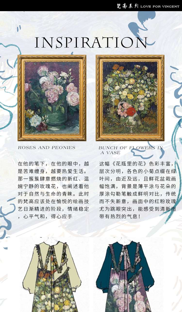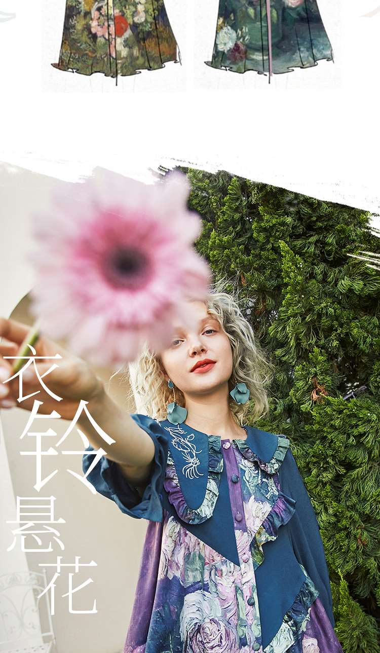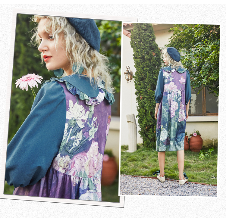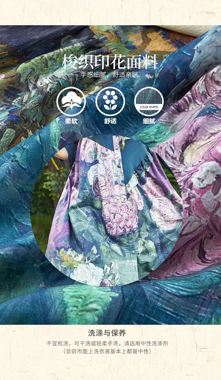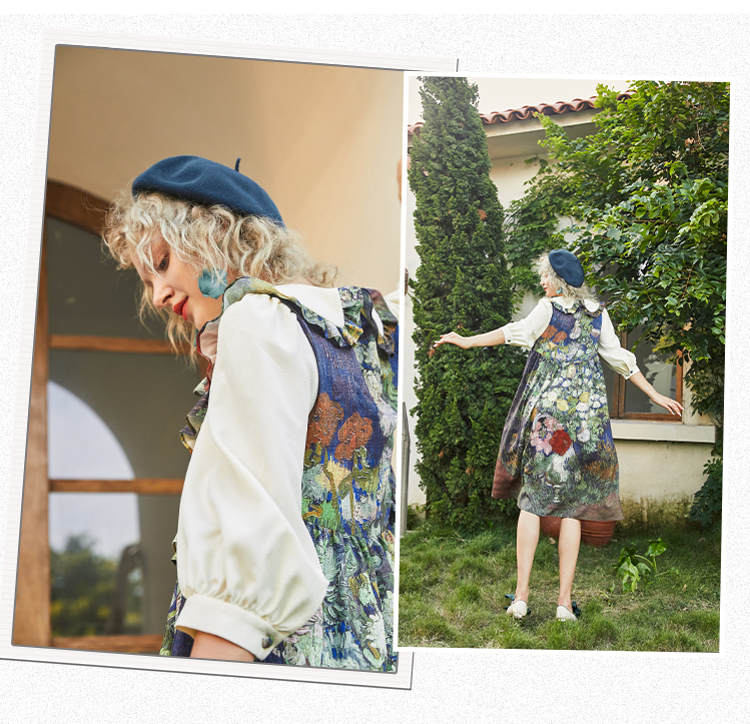 连衣裙 两三事梵高艺术衣铃悬花秋季新款复古连衣裙女气质设计感长款