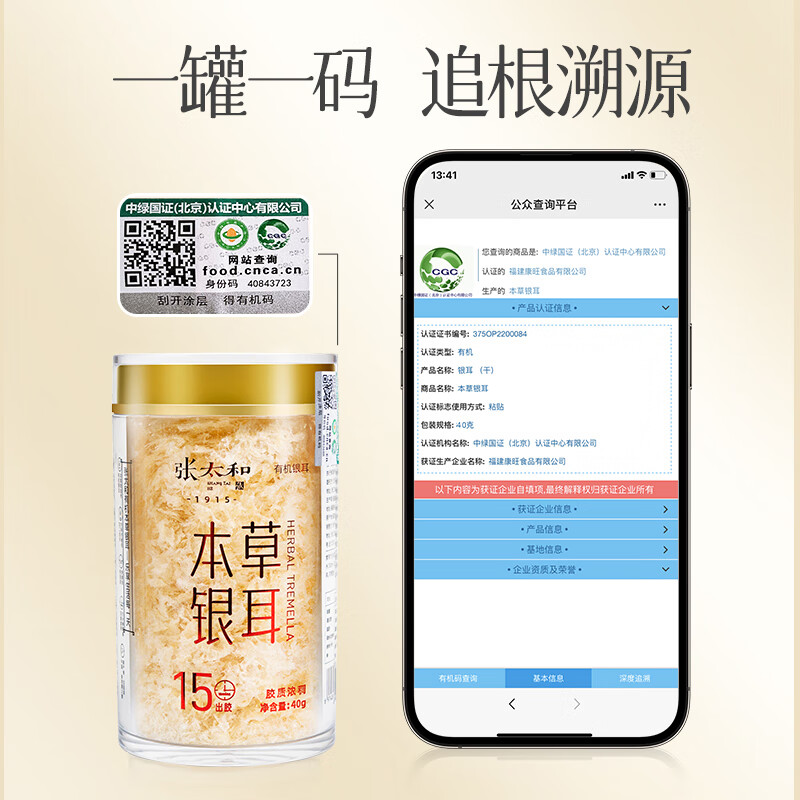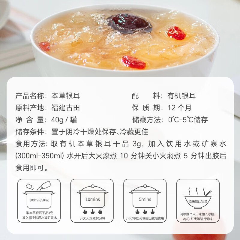 张太和 有机本草银耳 40g/罐+赠焖烧杯