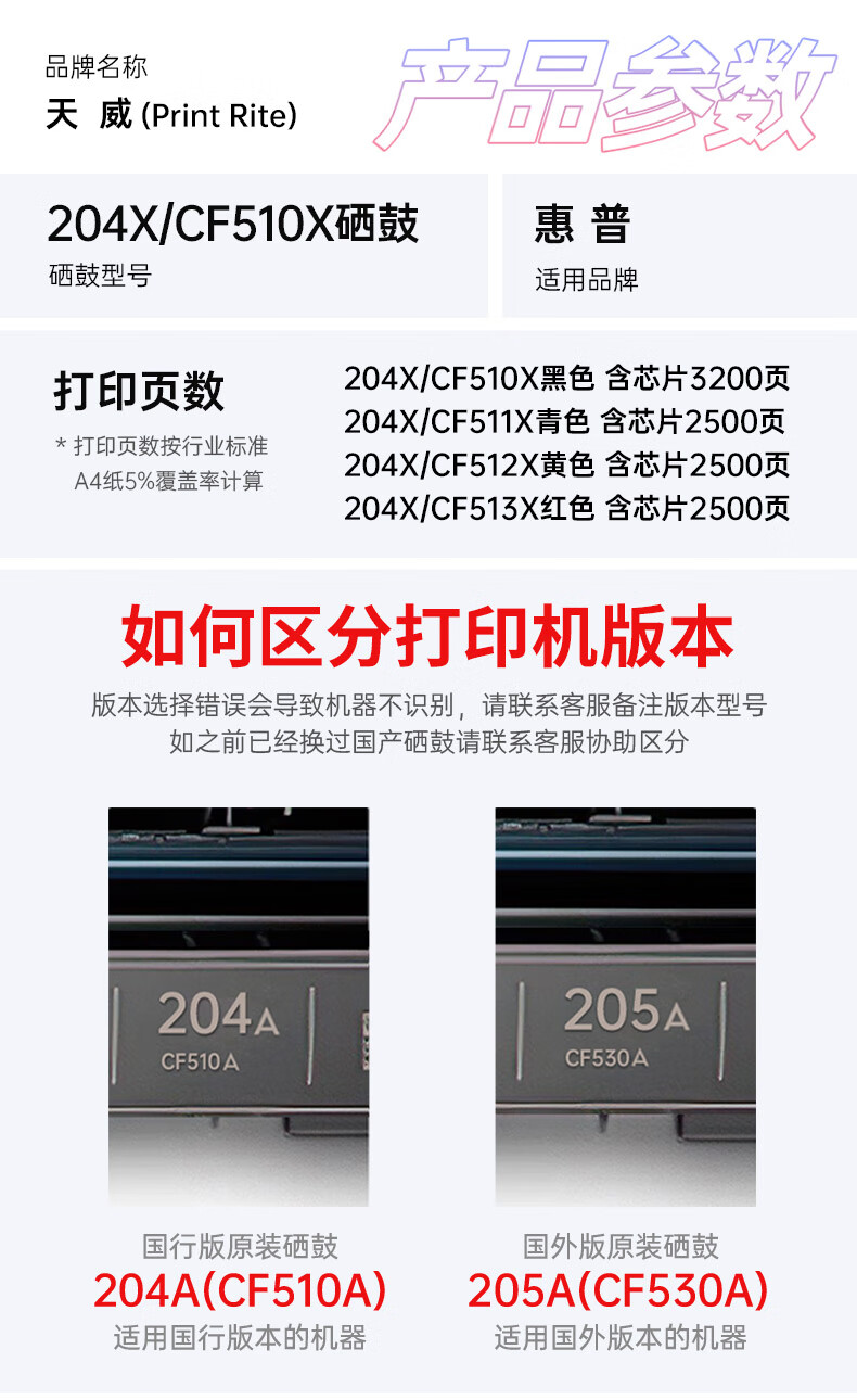 办公用品 天威204A/CF510A硒鼓适用惠普M154a M180n M154nw M181fw打印机硒鼓 四色