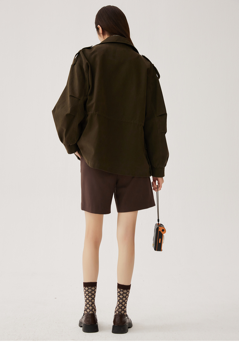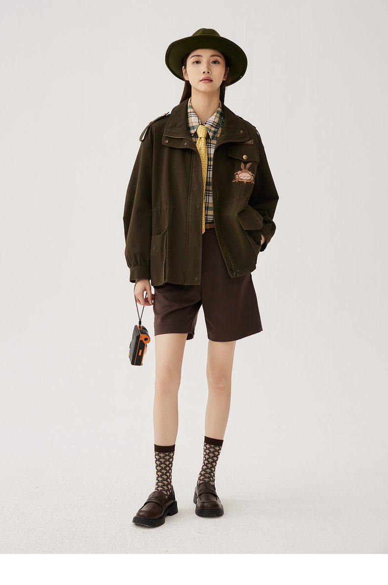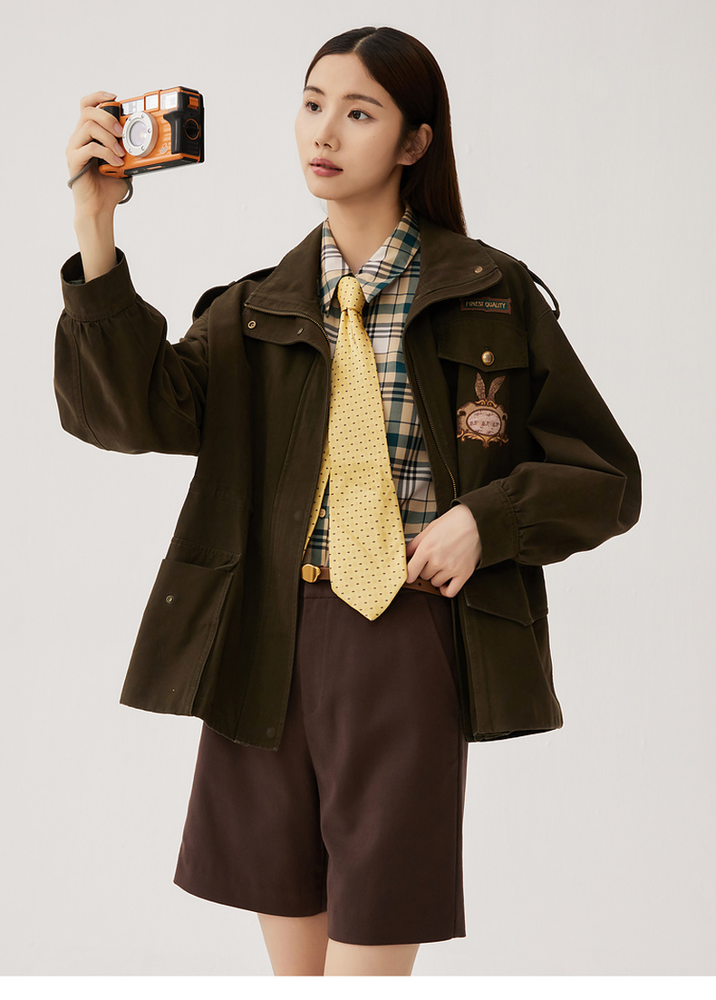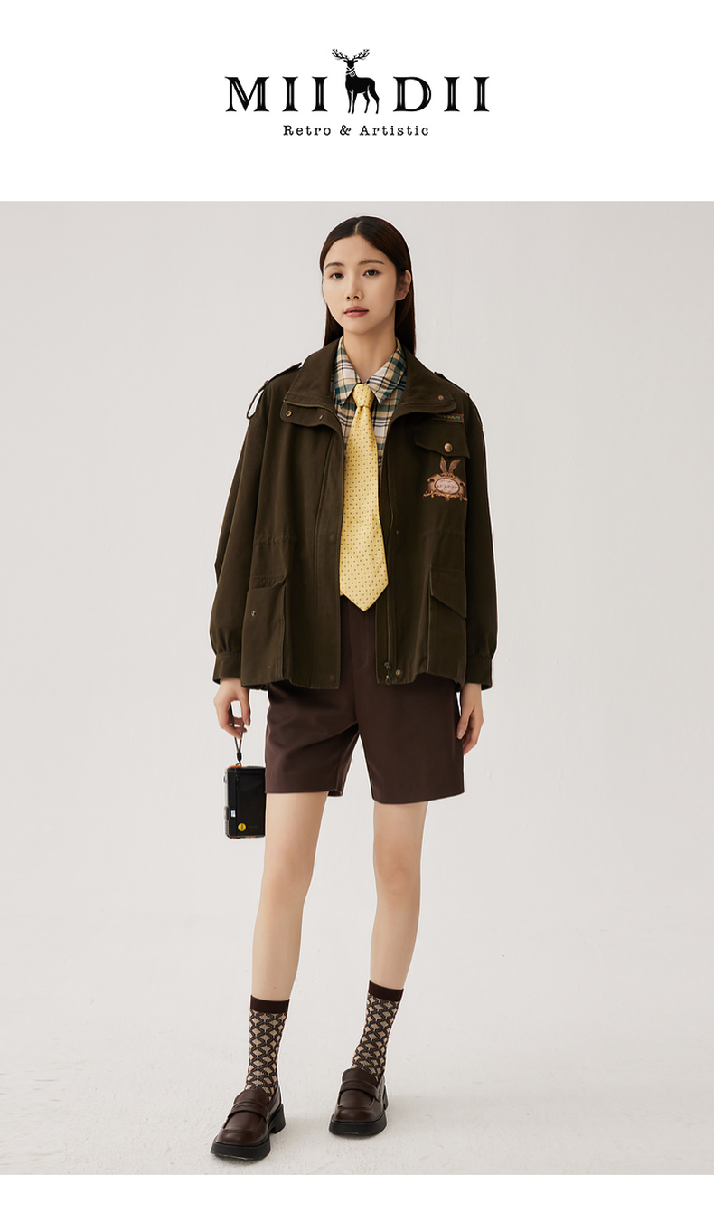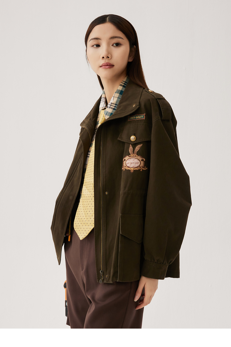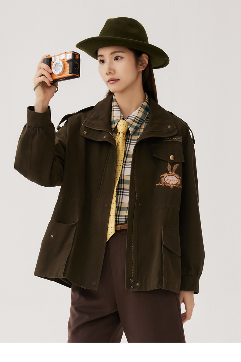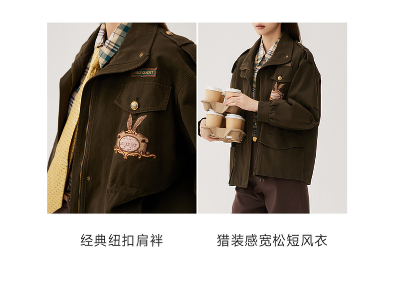 谜底短款宽松外套女2024秋季新款工装风大廓形绣花风衣247ME5006