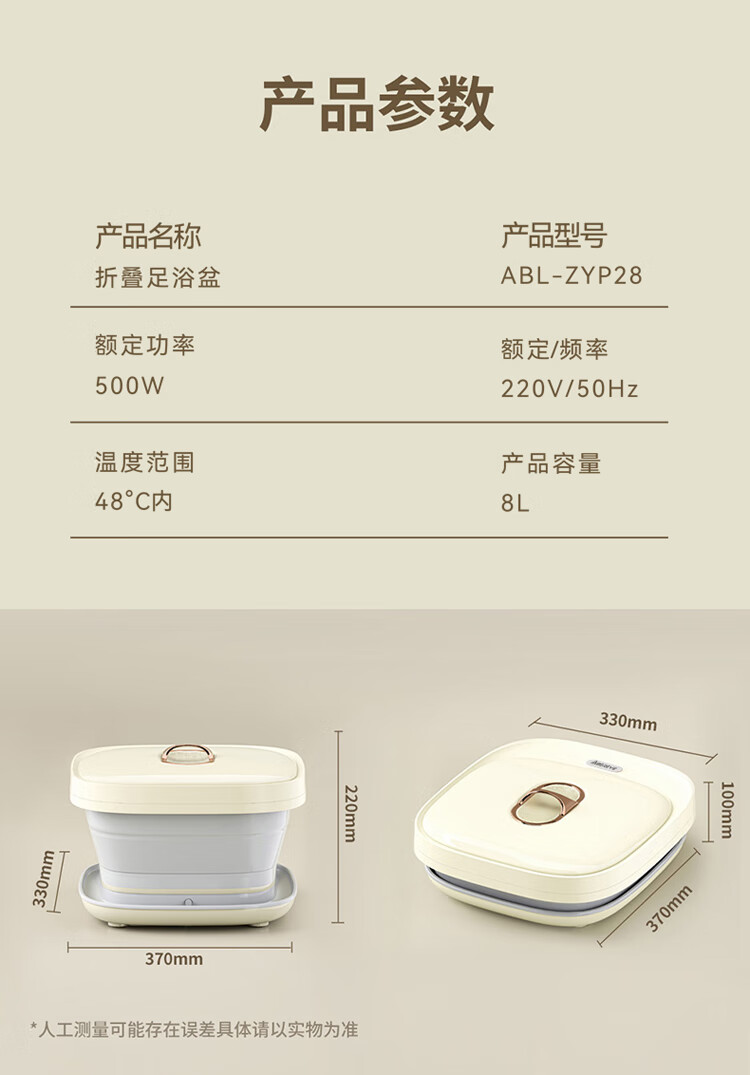 【小家电】Abereve艾贝丽 折叠足浴盆ABL-ZYP28 HF